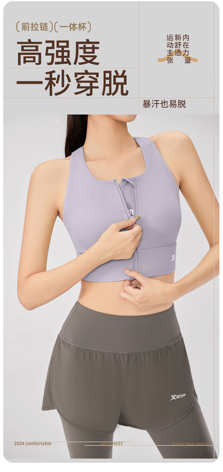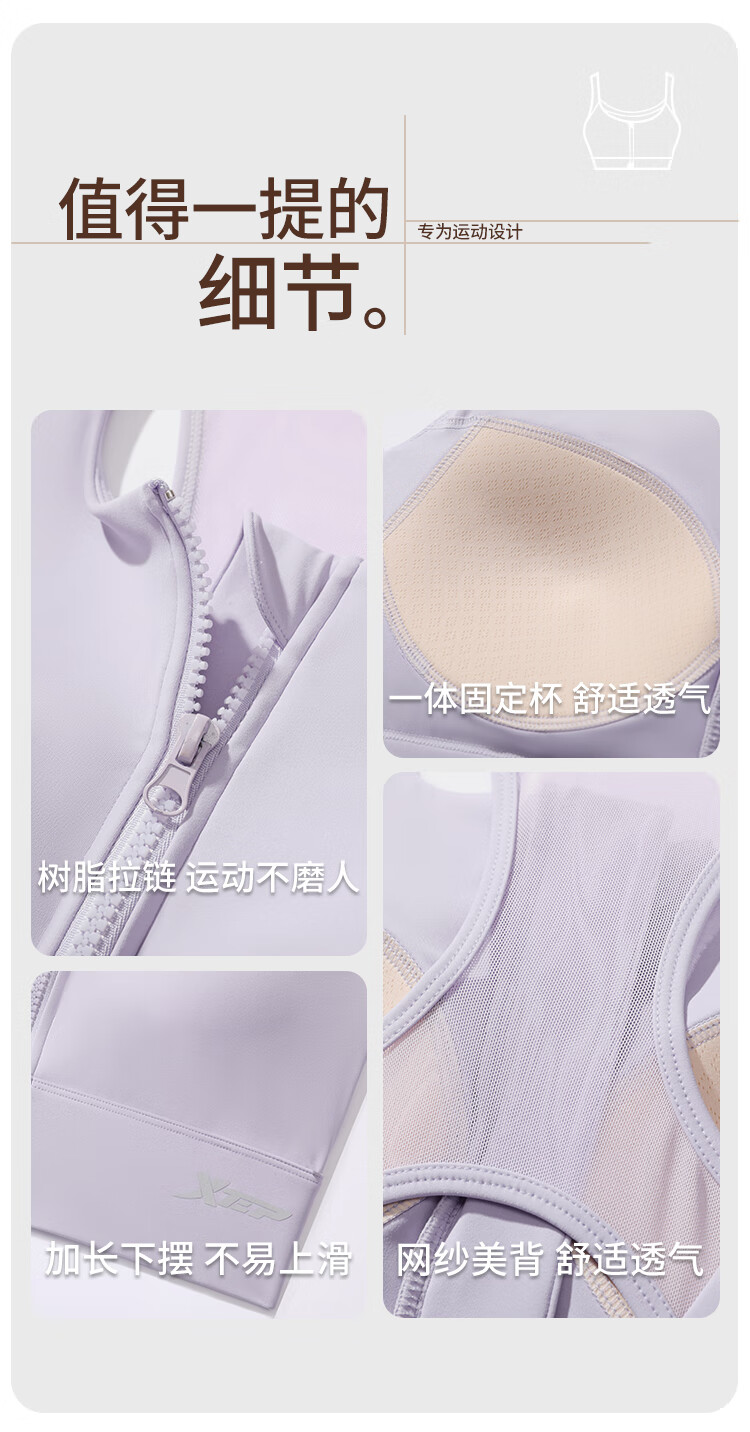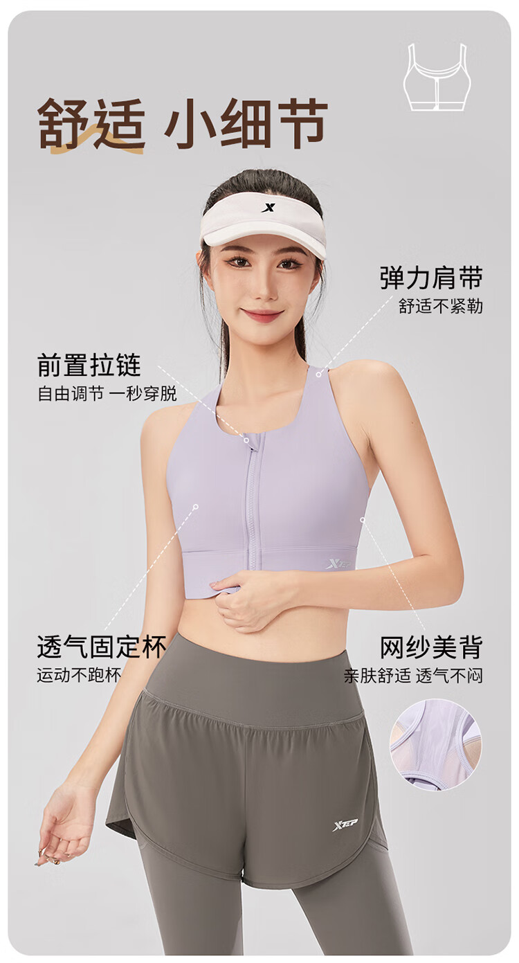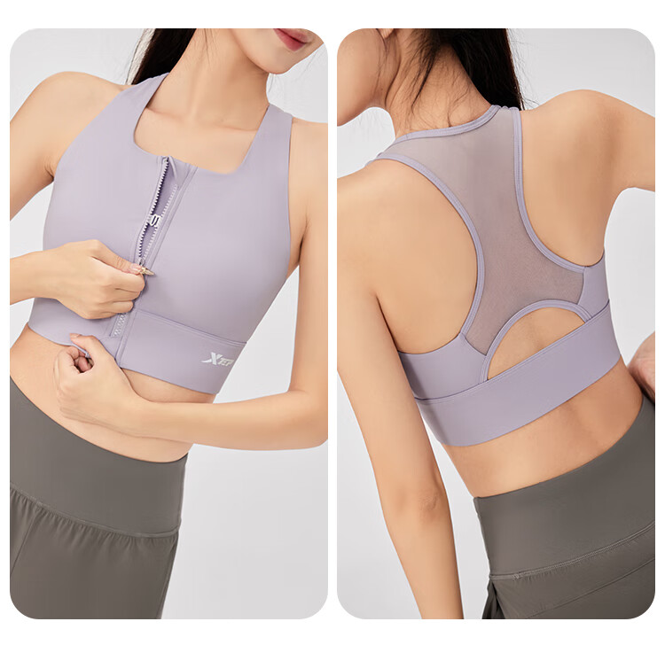 XTEP sports bra women's front zipper anti-shock and anti-sagging running fitness bra 2025 new beautiful back yoga vest for women