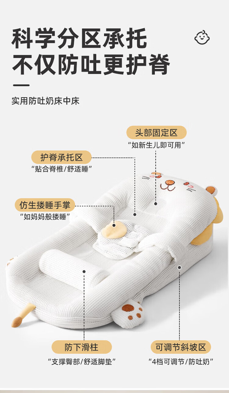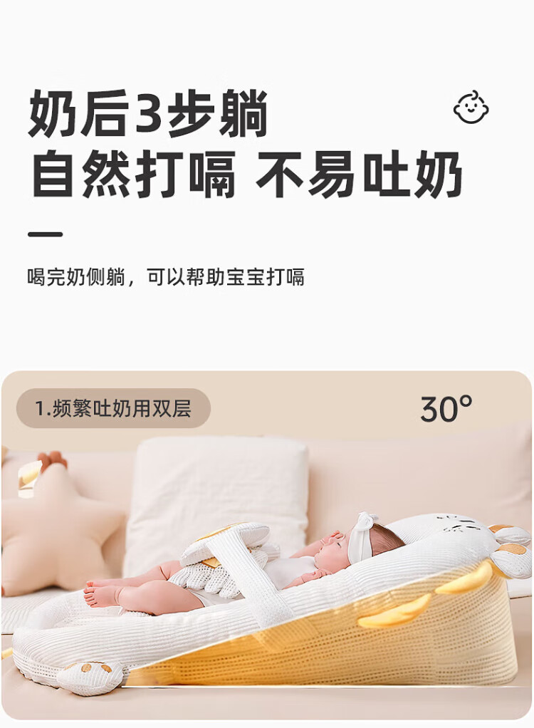 Leyunbao crib mid-bed slope pillow anti-vomiting and overflowing milk choking pillow newborn comfort pillow lying down breastfeeding artifact