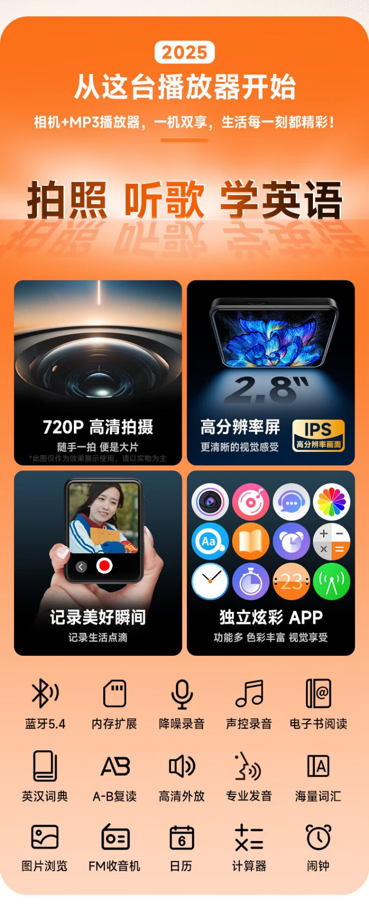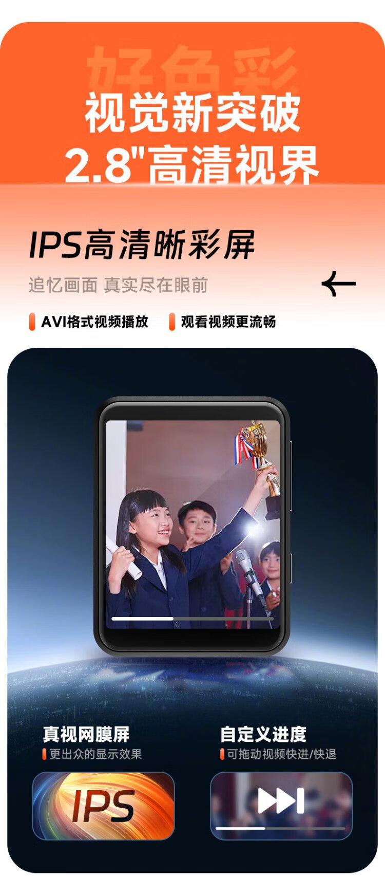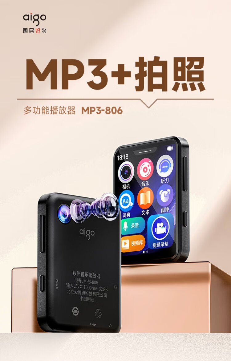 Patriot (aigo) mp3/mp4 player, lossless music player, English-Chinese dictionary 2.8-inch touch screen student English e-book, action camera, photo camera 806-64G