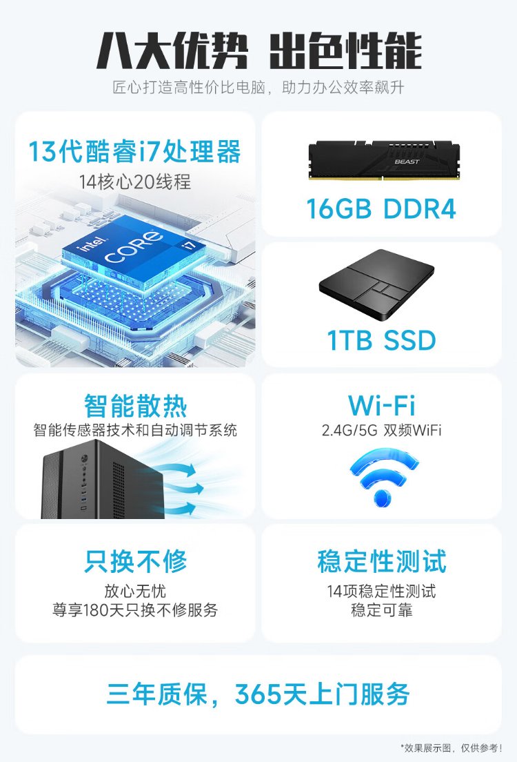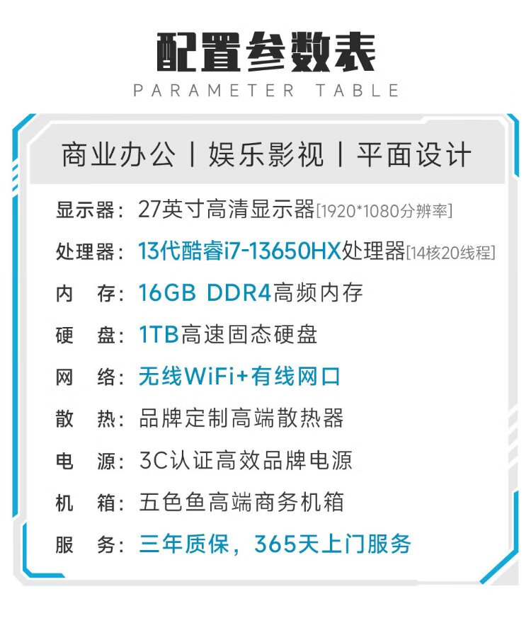 Wu Color Fish 13th generation Core i7-13650HX 16GD4 1TB solid state desktop computer host game graphic design home business office desktop complete machine 27 inches