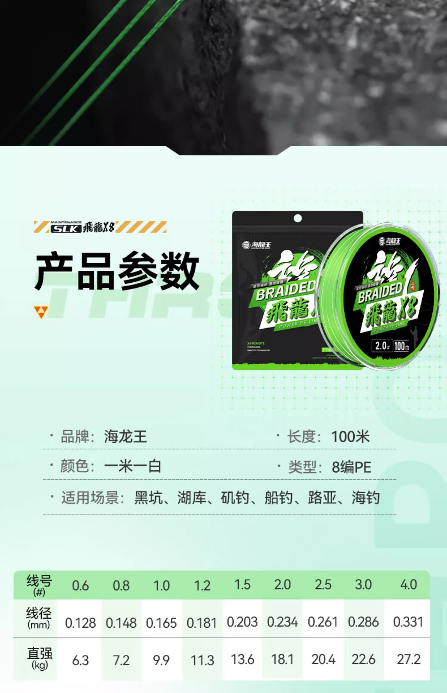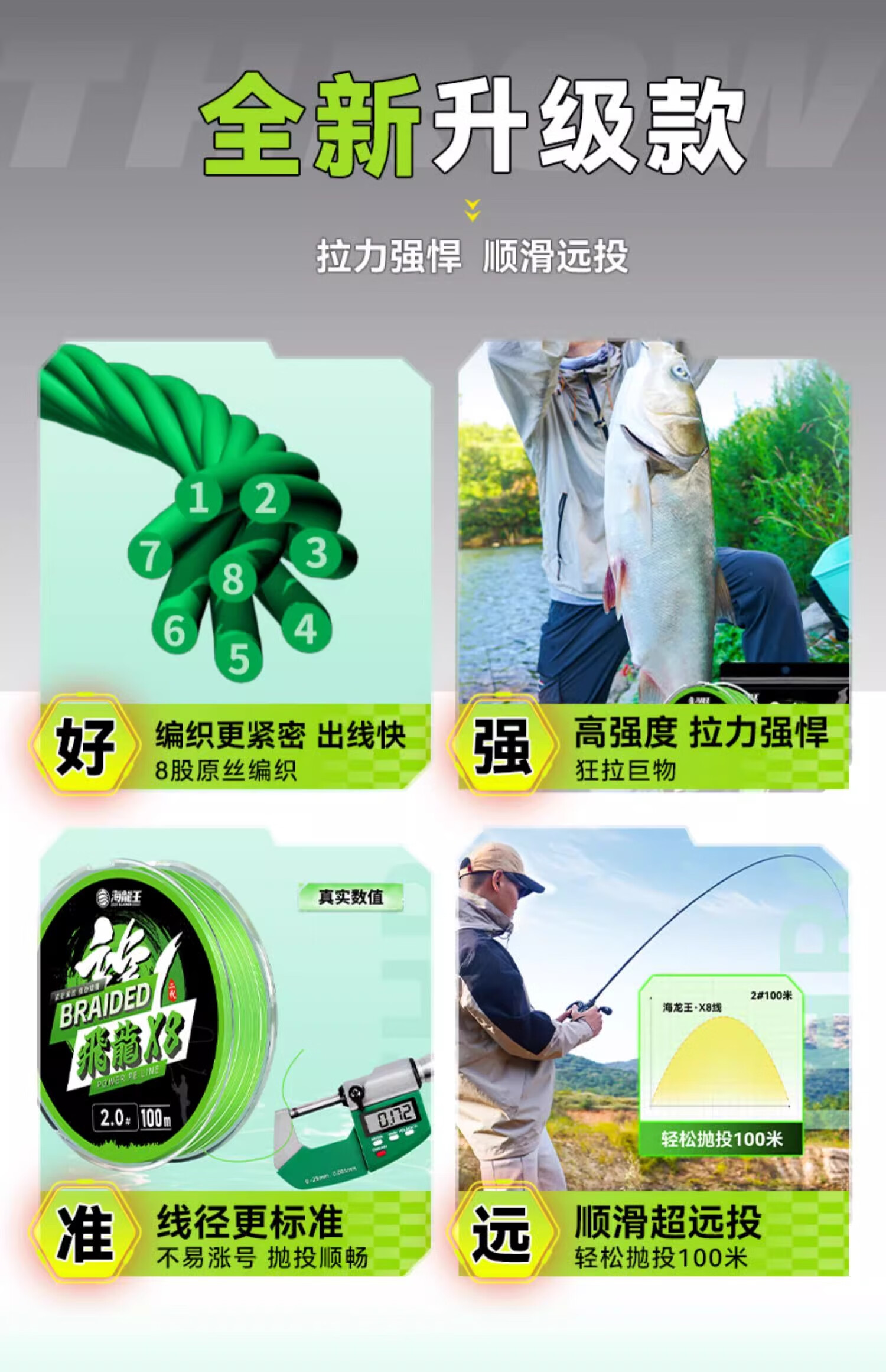 Neptune King pe line Feilong 3 third generation 8-bundle sub-line Dalima enhanced version Feilong three-generation 8-bundle 100 meters 1.5