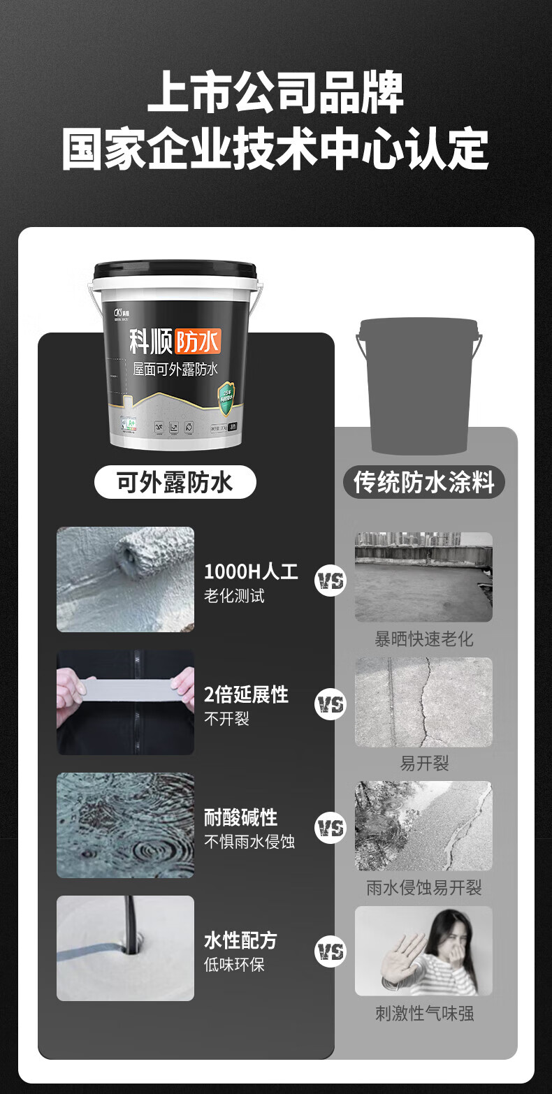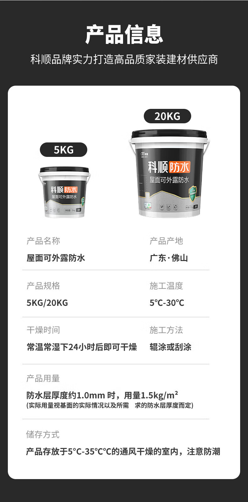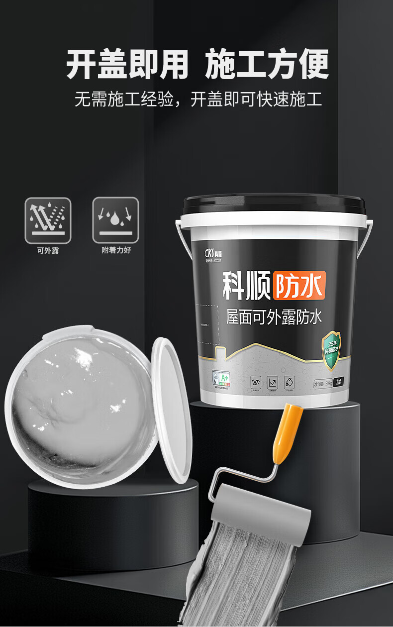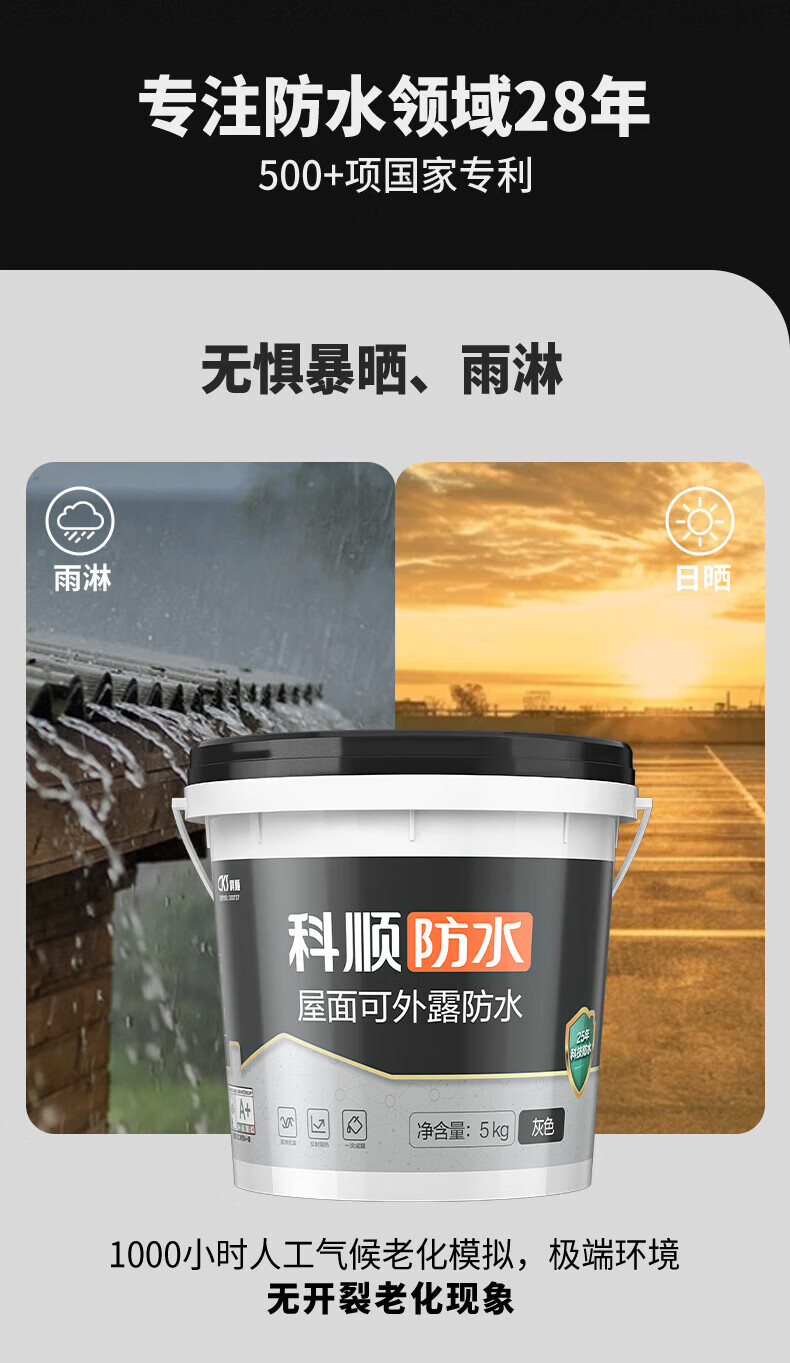 Keshun waterproof coating can expose the roof, exterior wall, roof leakage repair, king material waterproof glue roof WM200-roof waterproof gray 20KG