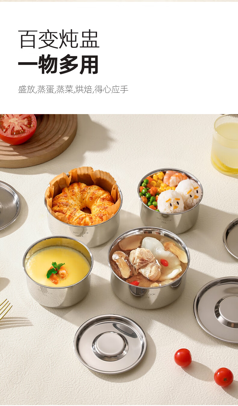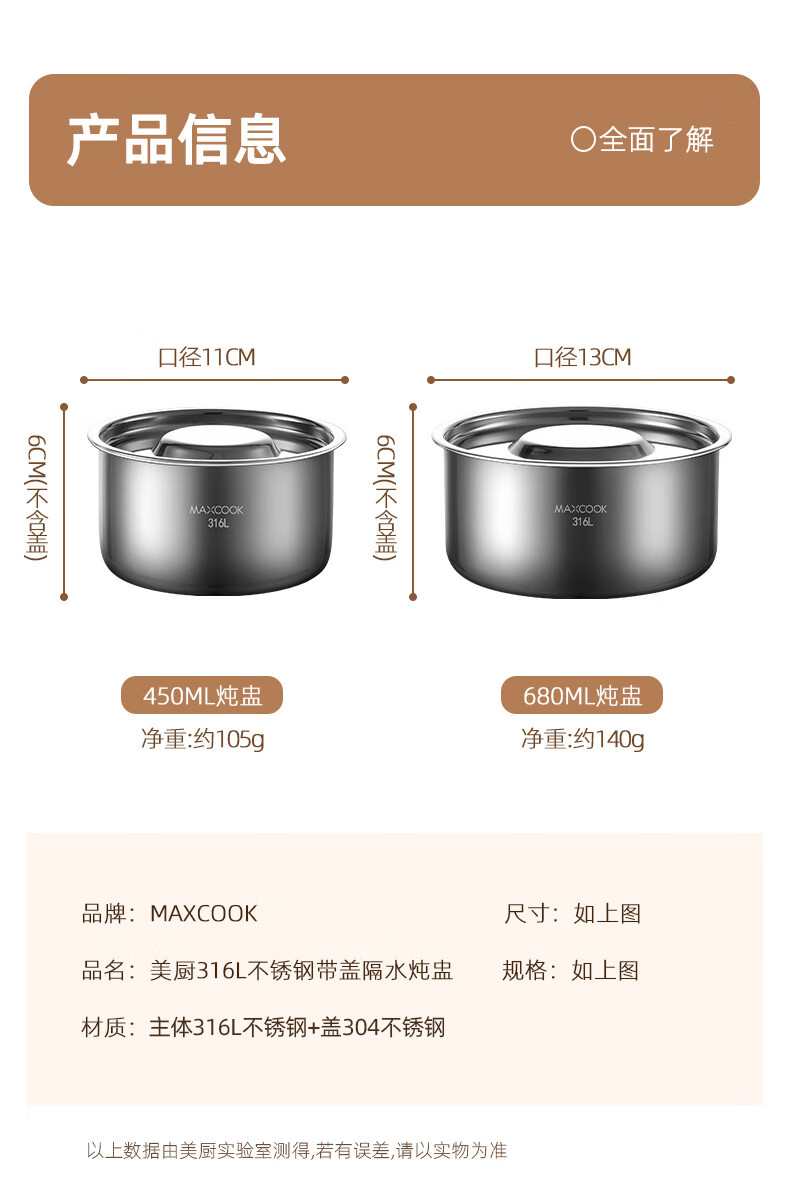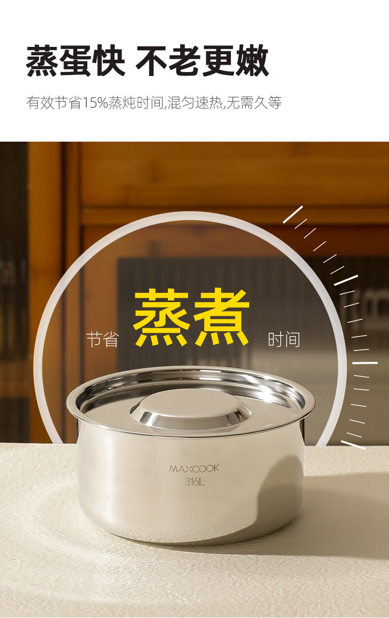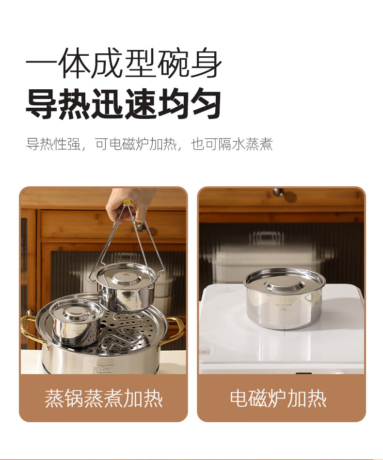 MAXCOOK 316L stainless steel steaming bowl with lid, soup cup, water-proof stew pot, one person, one cup, bird's nest, steamed egg special bowl MCPJ4263
