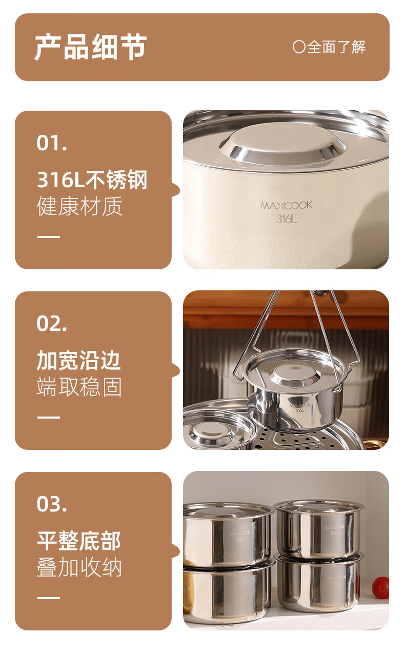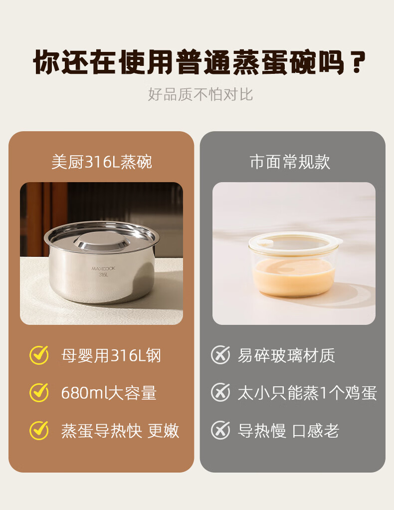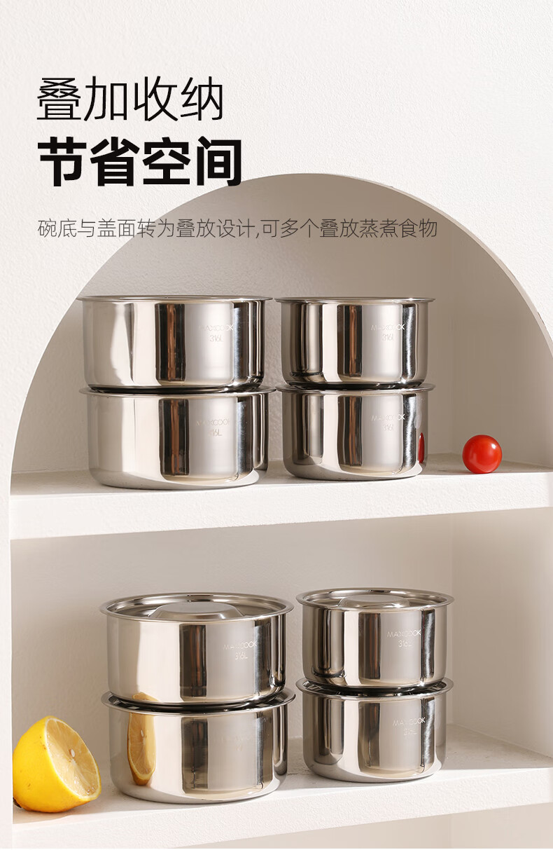 MAXCOOK 316L stainless steel steaming bowl with lid, soup cup, water-proof stew pot, one person, one cup, bird's nest, steamed egg special bowl MCPJ4263