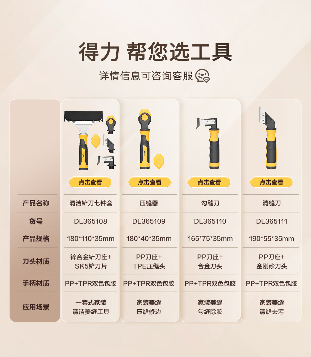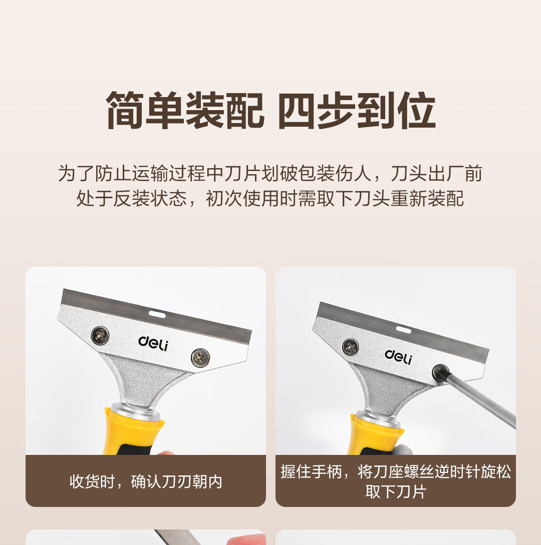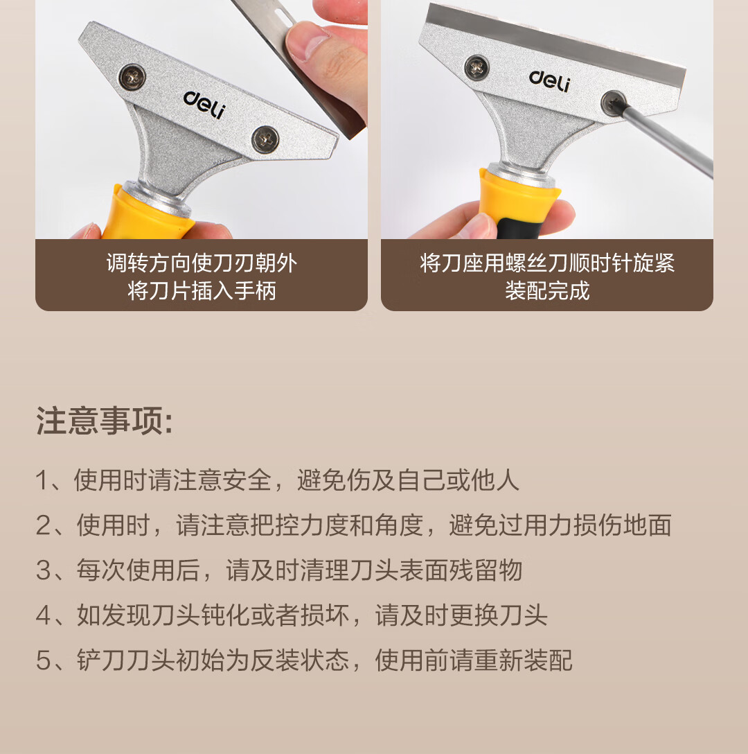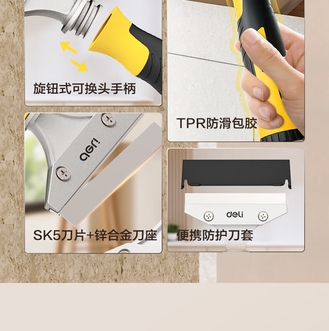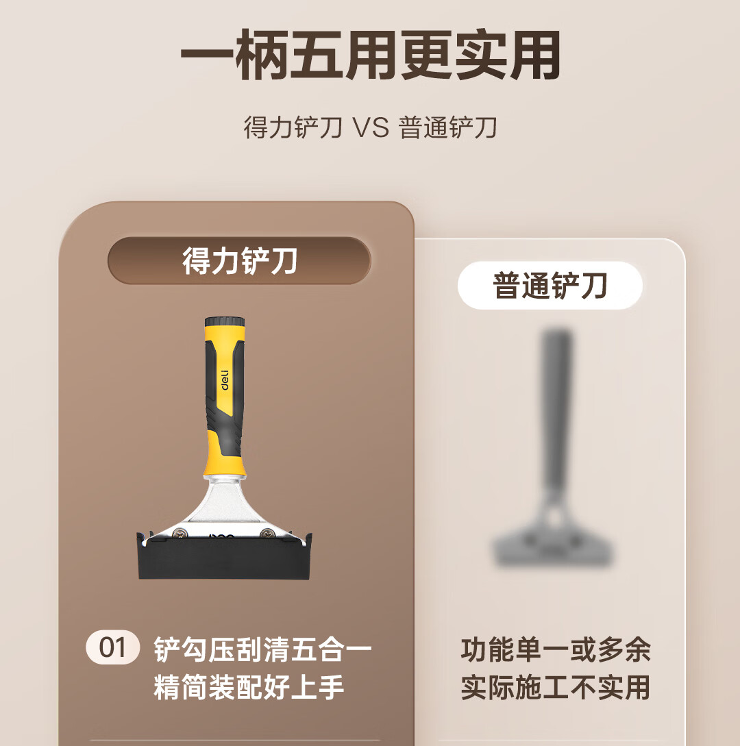 Deli aluminum alloy scraper, glass glue scraper, tile beauty seam shovel, wall leather artifact, cleaning and glue removal multifunctional seven-piece set
