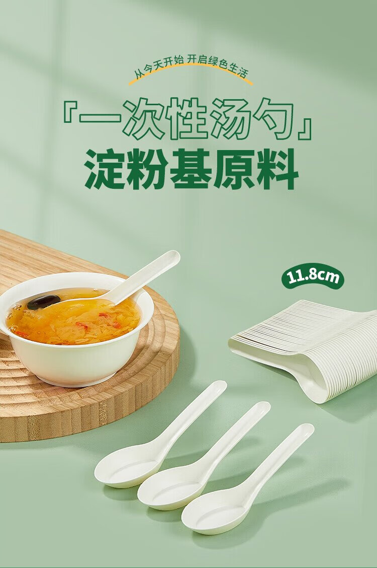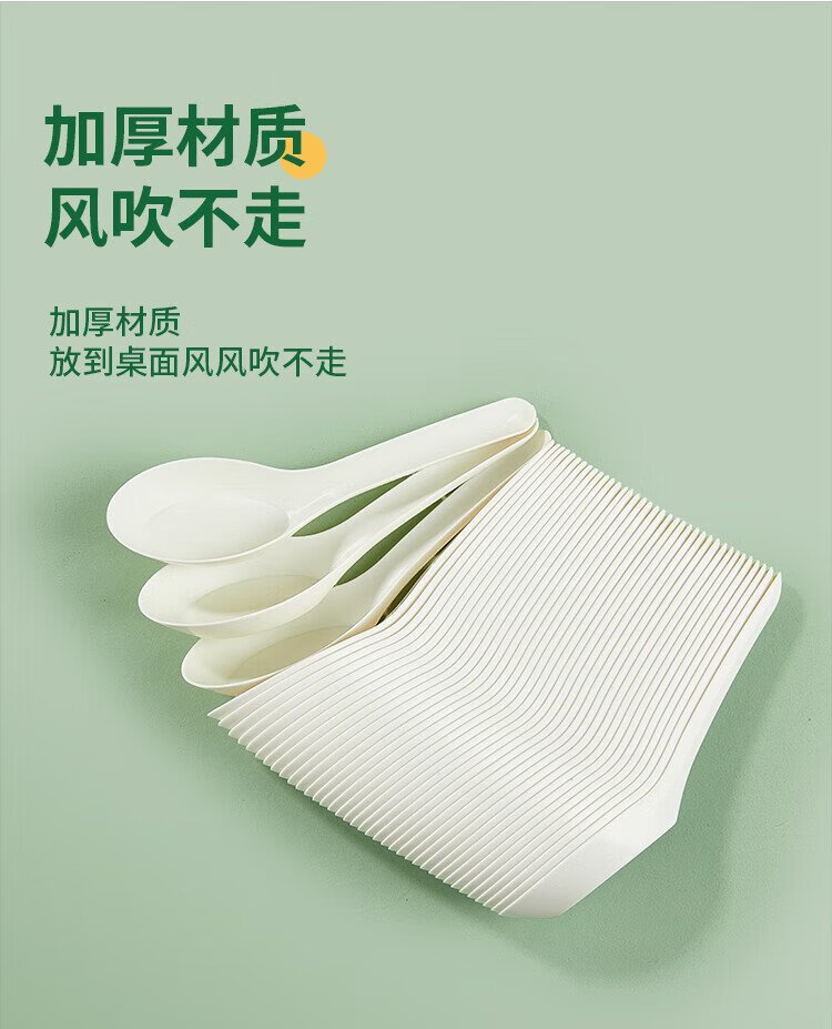 Youao disposable spoons 50 pieces, thickened soup spoons, starch-based table spoons, dessert takeaway packaging forks and spoons