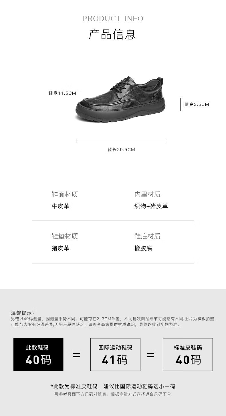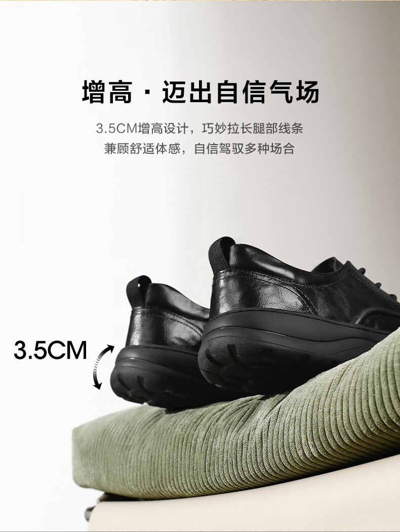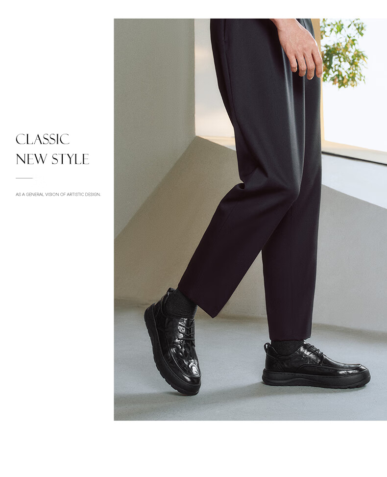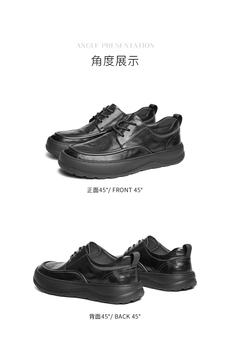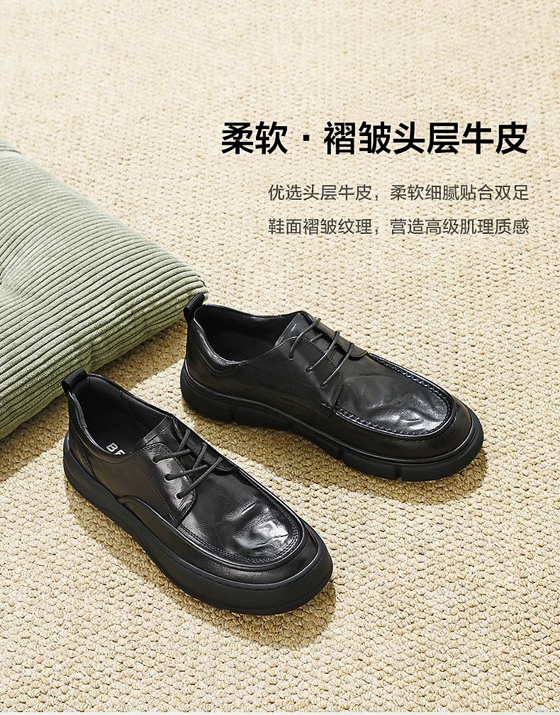 Belle Thick Sole Business Shoes Men's 2025 New Spring Cow Leather Casual Leather Shoes A1841AM5 Black - Set of Feet 41