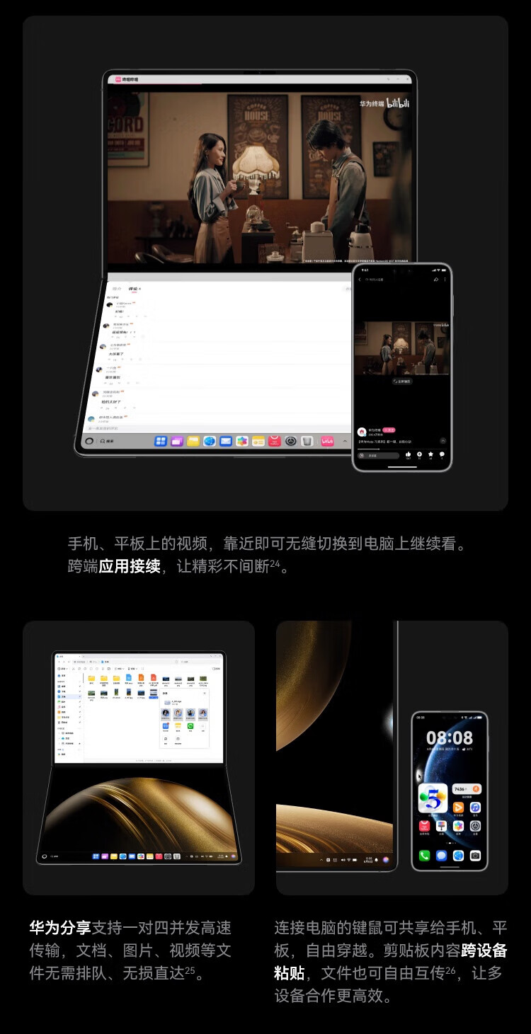 Huawei MateBook Fold Extraordinary Master Laptop Hongmeng OS Ultra-thin Folding Computer Double-Layer OLED Display 32GB 2TB Forged Shadow Black