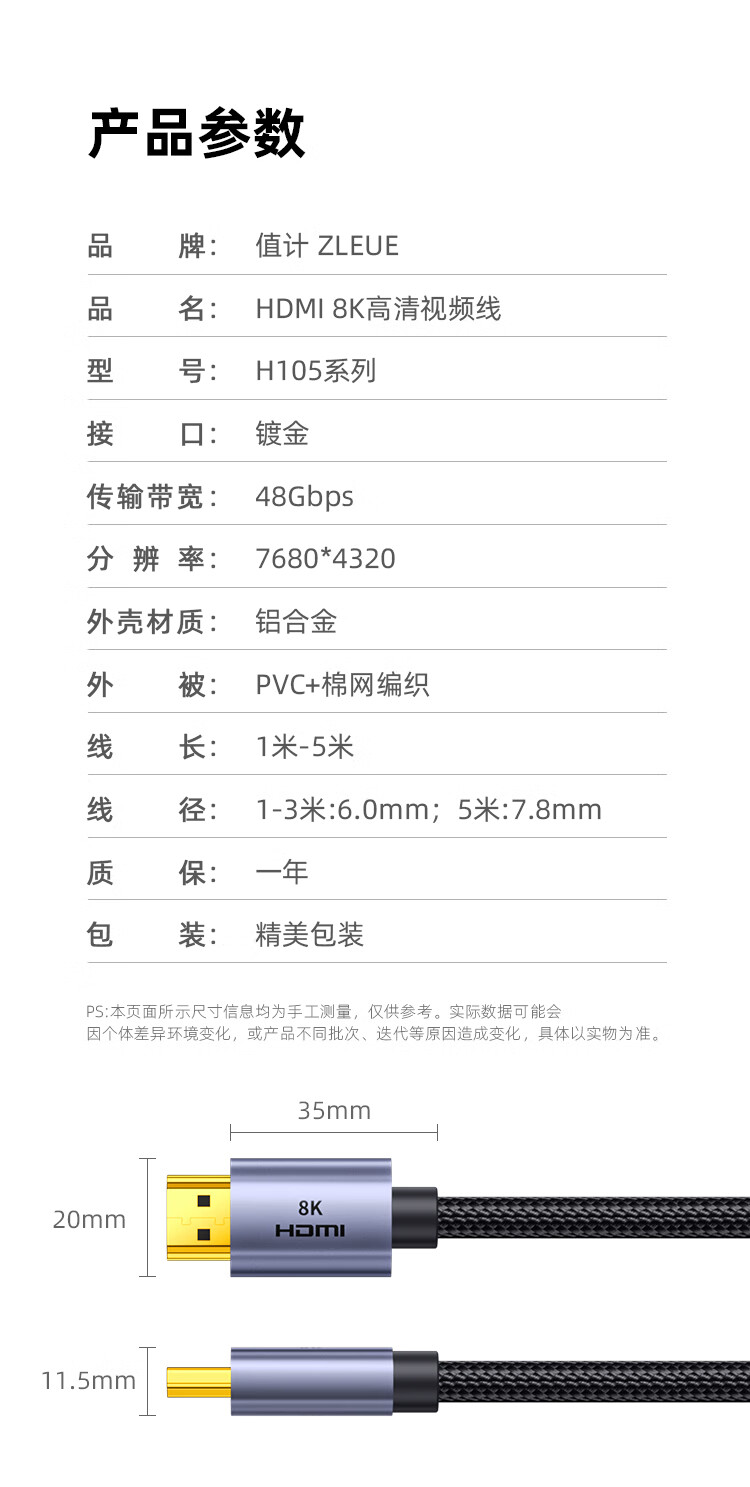 Value meter HDMI cable full blood version 2.1 8K60Hz4K240Hz high-definition video cable compatible with 2.0 laptop connected to TV monitor projector 1.5 meters H105D