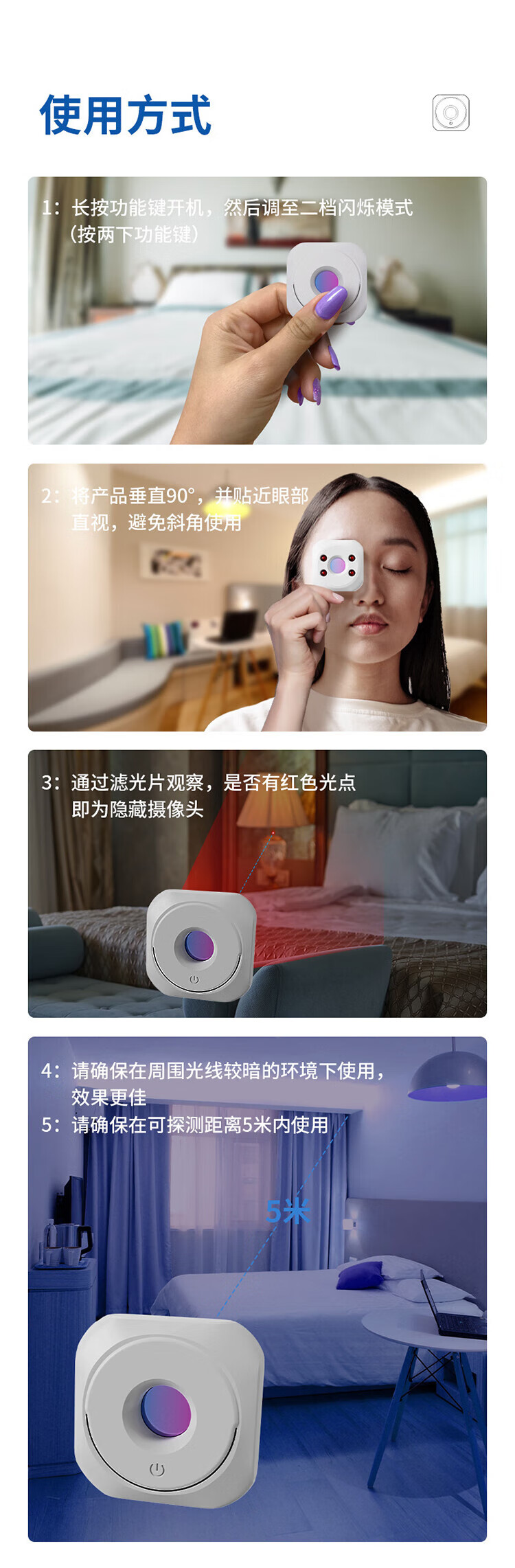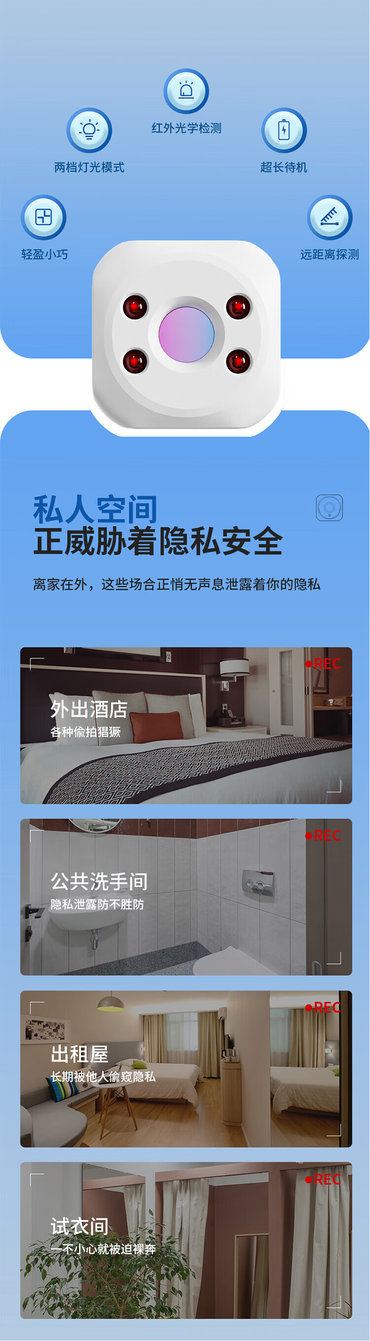 Four Leaf Heart Hotel Camera Detector Rechargeable Anti-Peeping and Anti-shooting Instrument Portable Signal Detector Infrared Scan