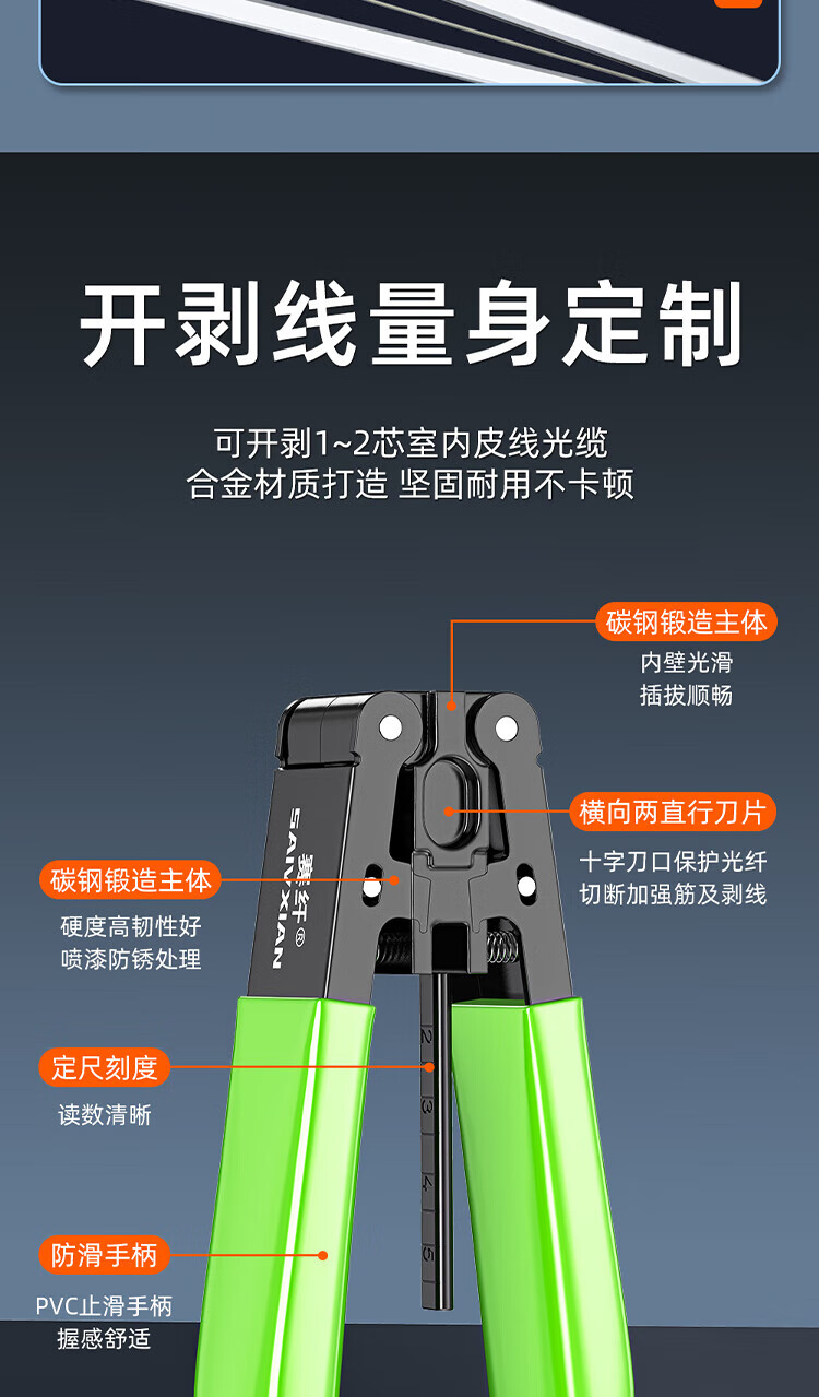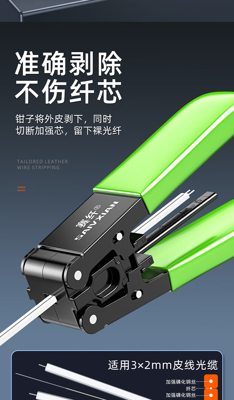 Sai fiber leather stripper stripper fiber optic cable stripper leather stripper fiber optic home tool metal fiber stripper green
