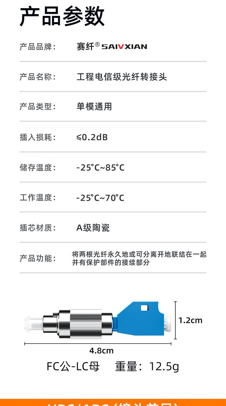 Sai Fiber telecommunication grade fiber optic adapter FC-LC male and female fiber optic coupler round to square head optical power red light pen docking connector