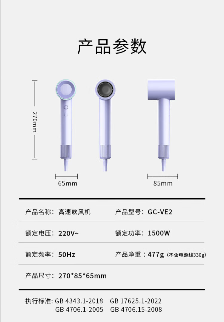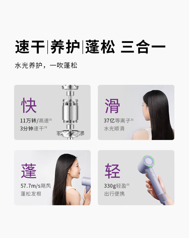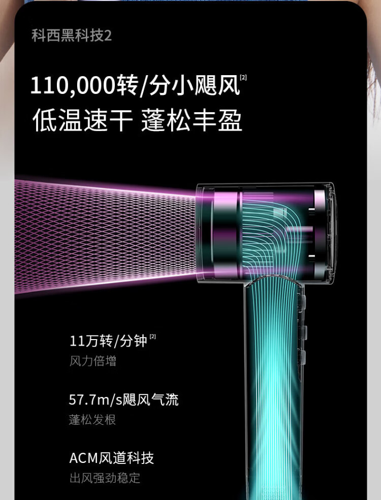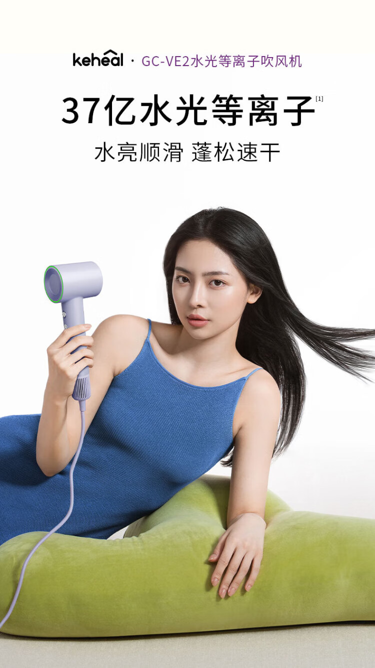 KEHEAL Kesi high-speed hair dryer 3.7 billion water light plasma maintenance household negative ions do not damage power generation hair dryer quick dry hair care portable hair dryer gift home appliances national subsidies