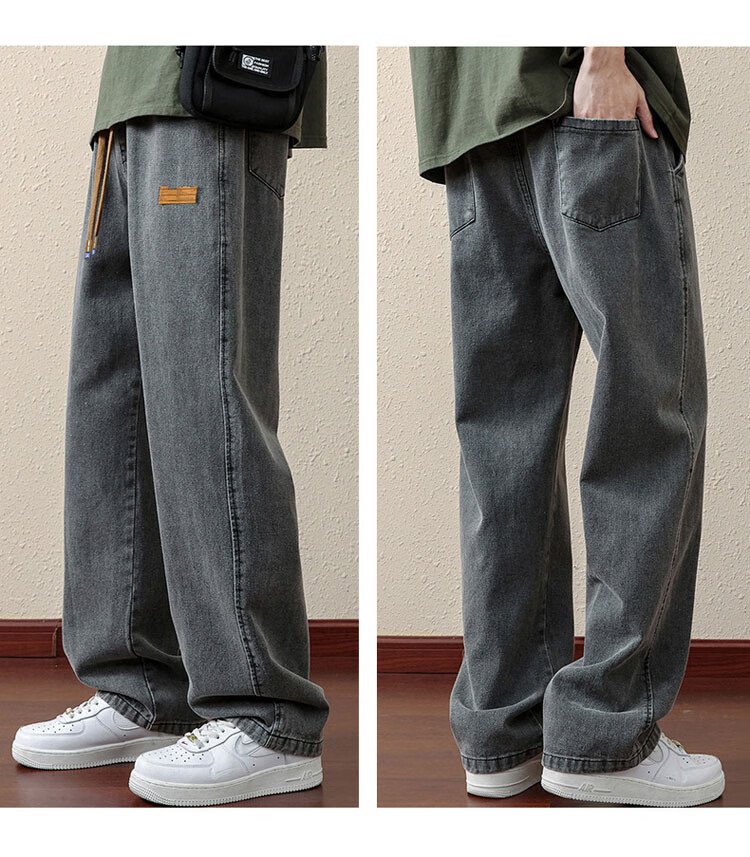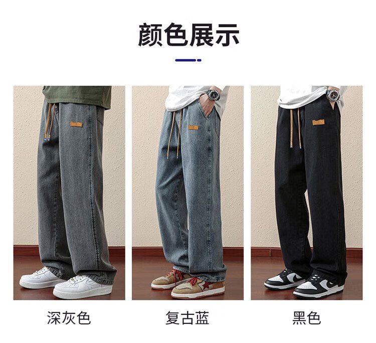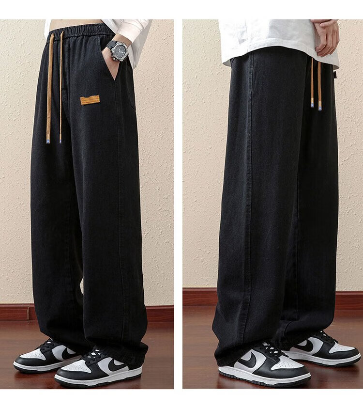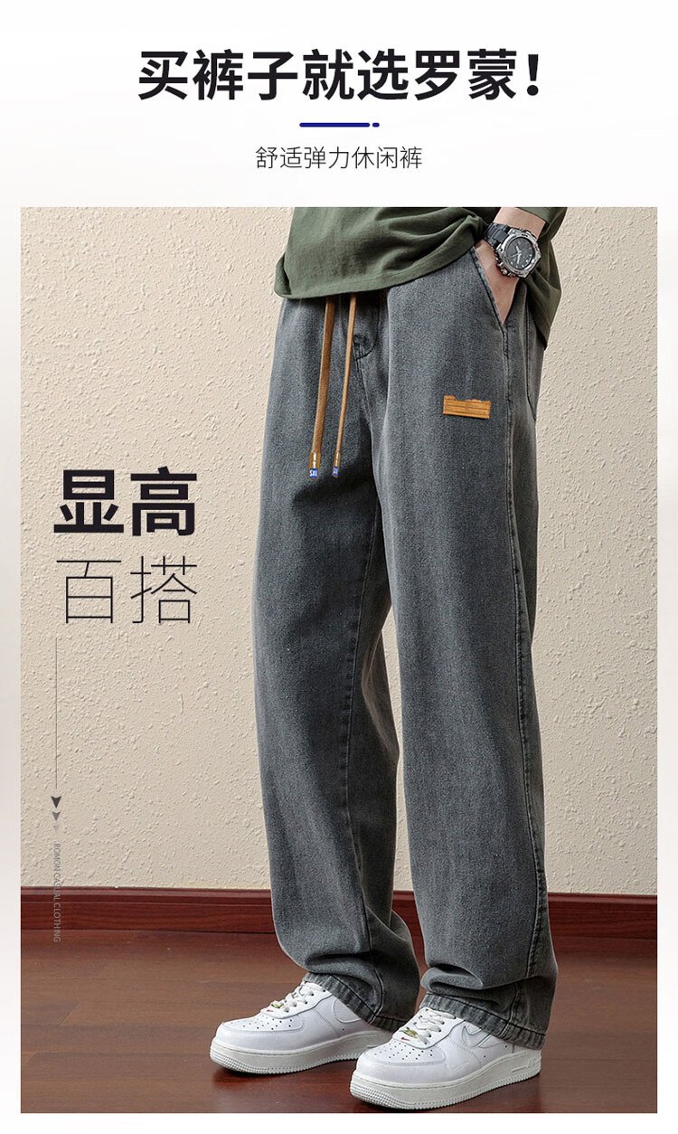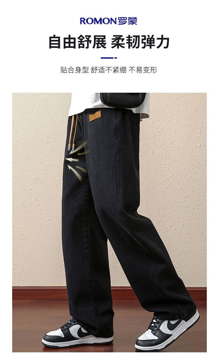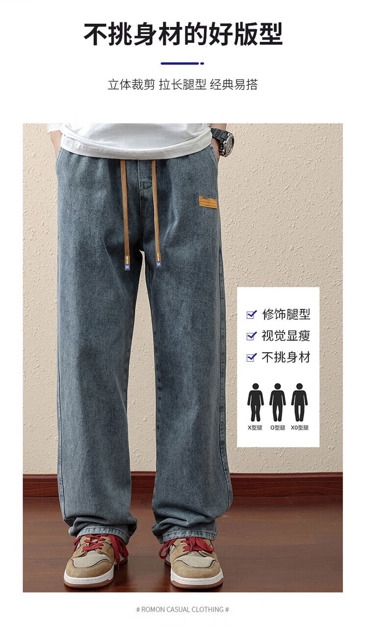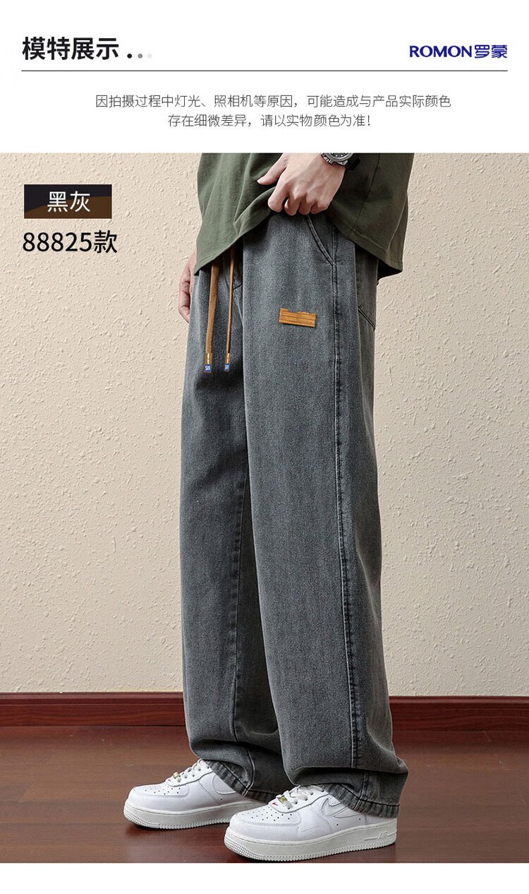 ROMON jeans men's autumn and winter loose casual pants men's straight wide-leg pants men's trendy trousers