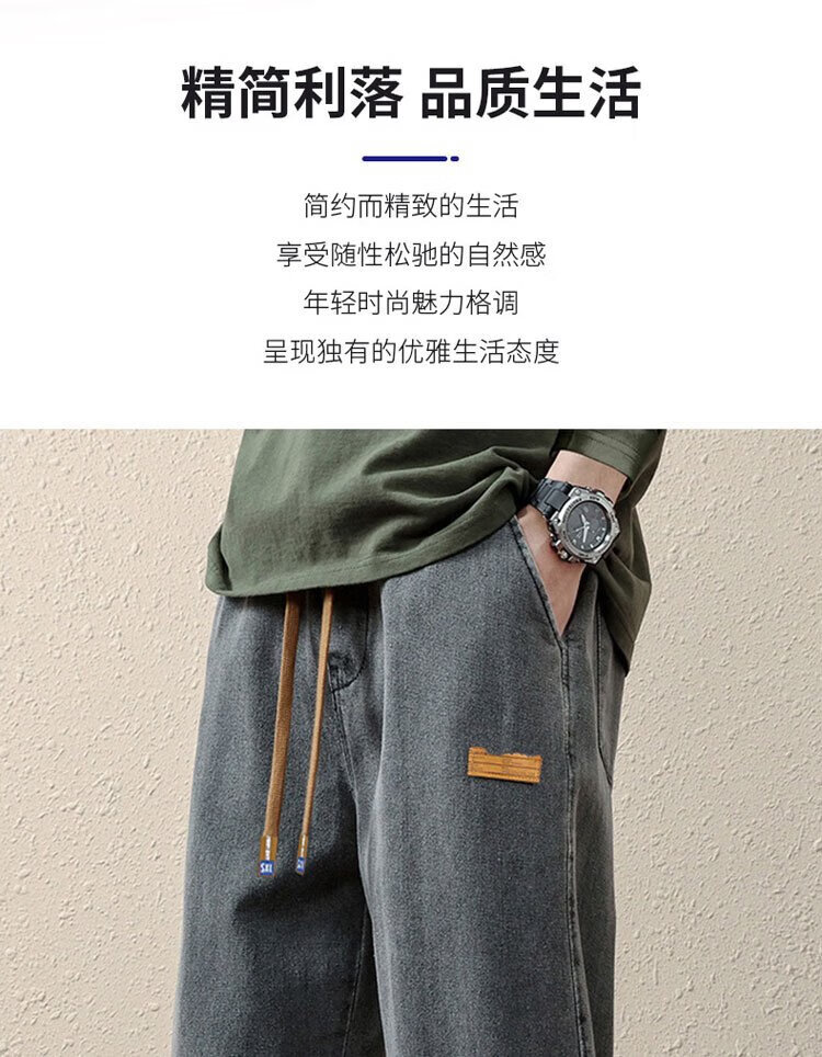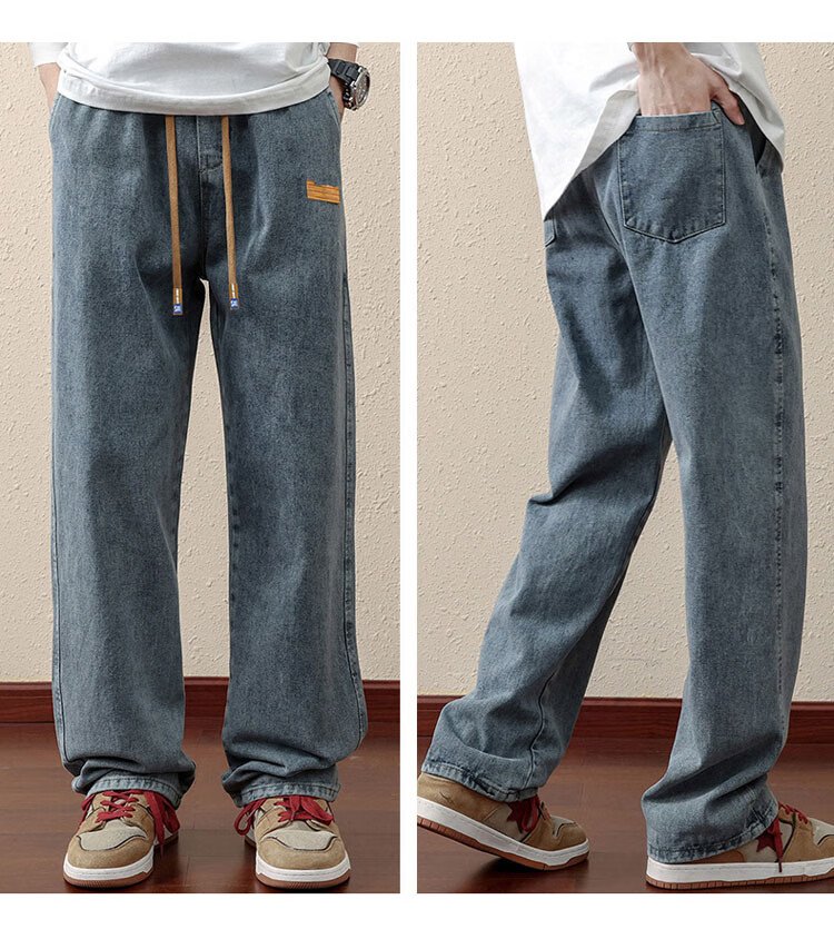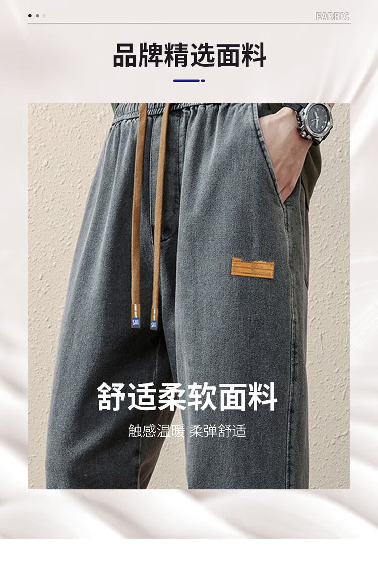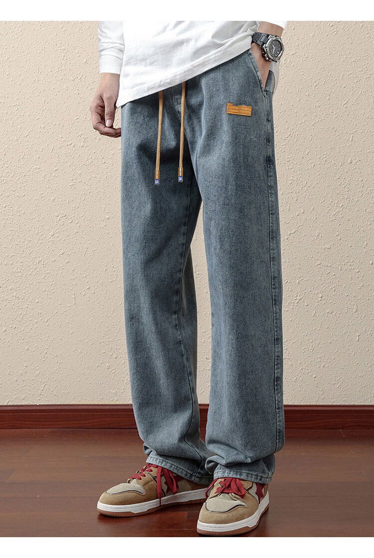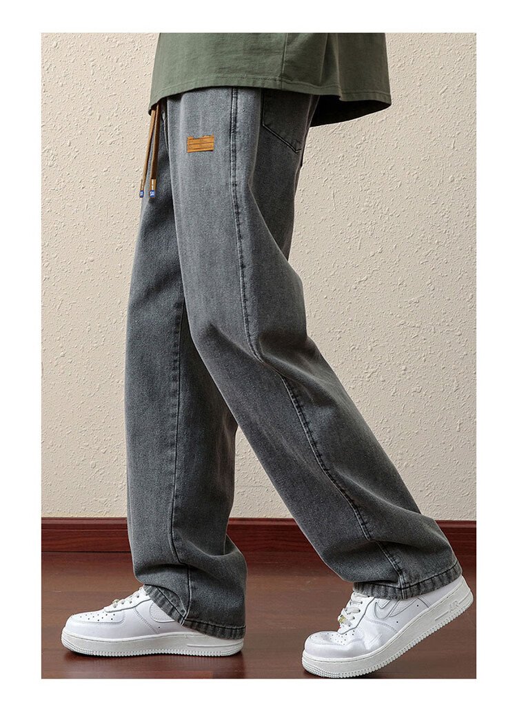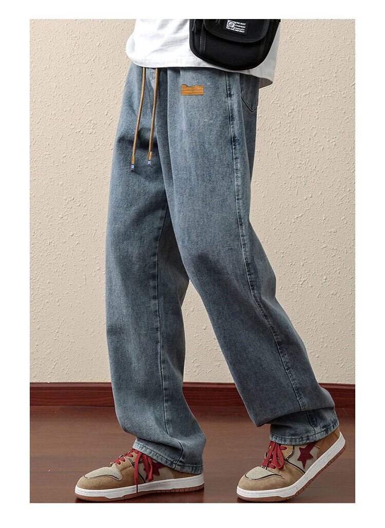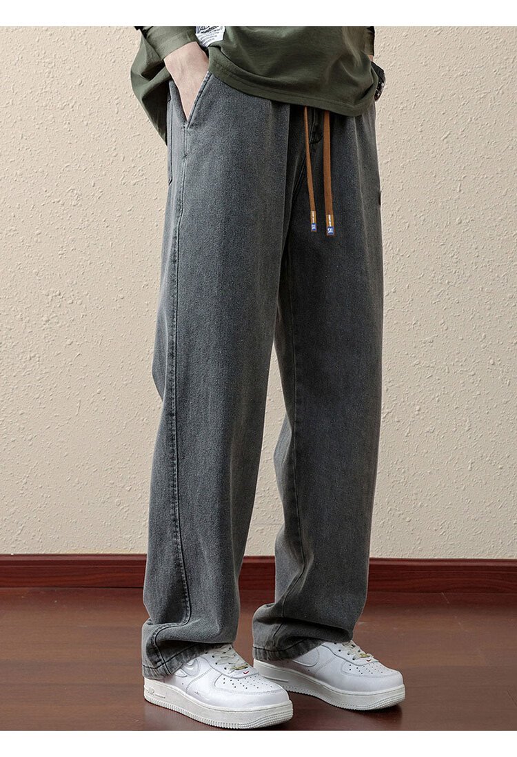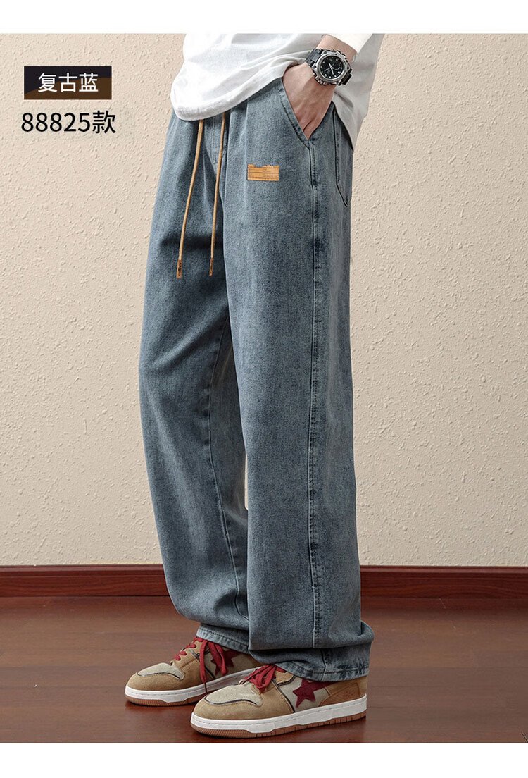 ROMON jeans men's autumn and winter loose casual pants men's straight wide-leg pants men's trendy trousers