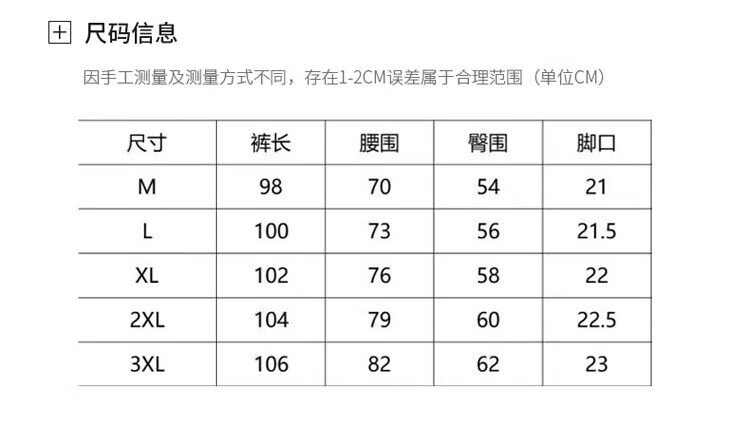 Outseam (cm) 99 cm 101.5 cm 104 cm 106.5 cm 109 cm