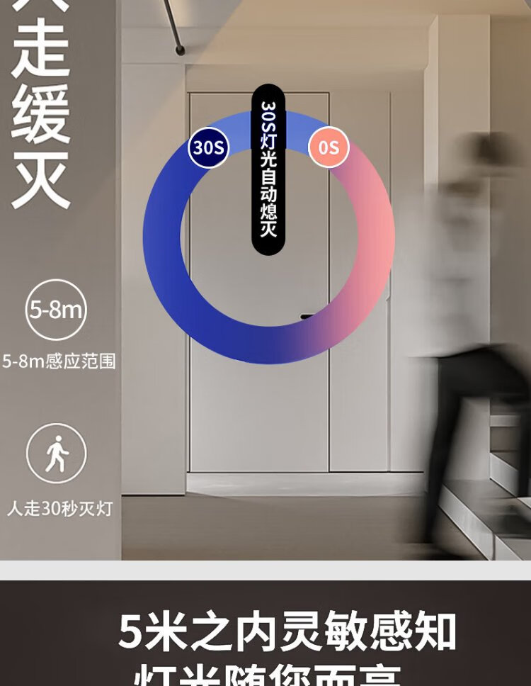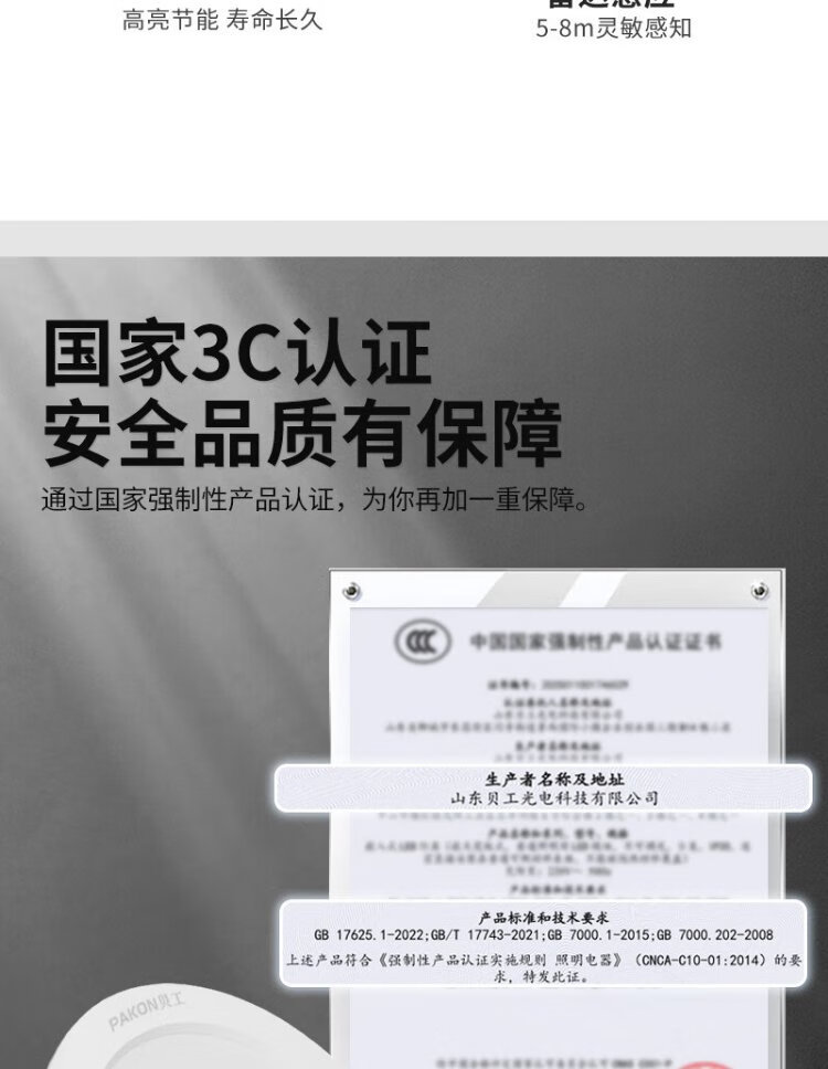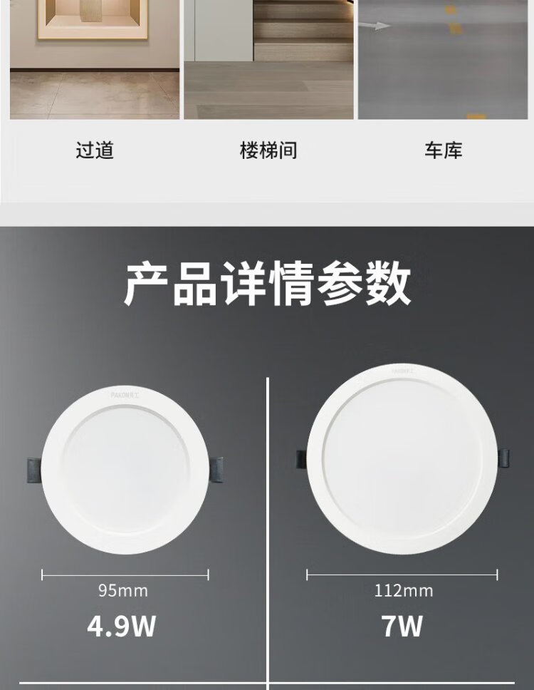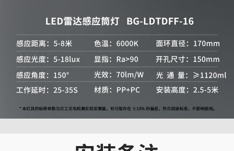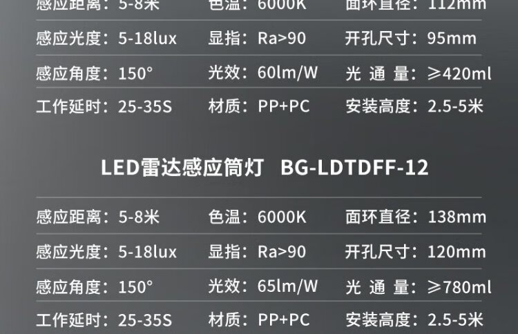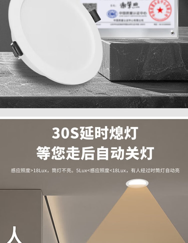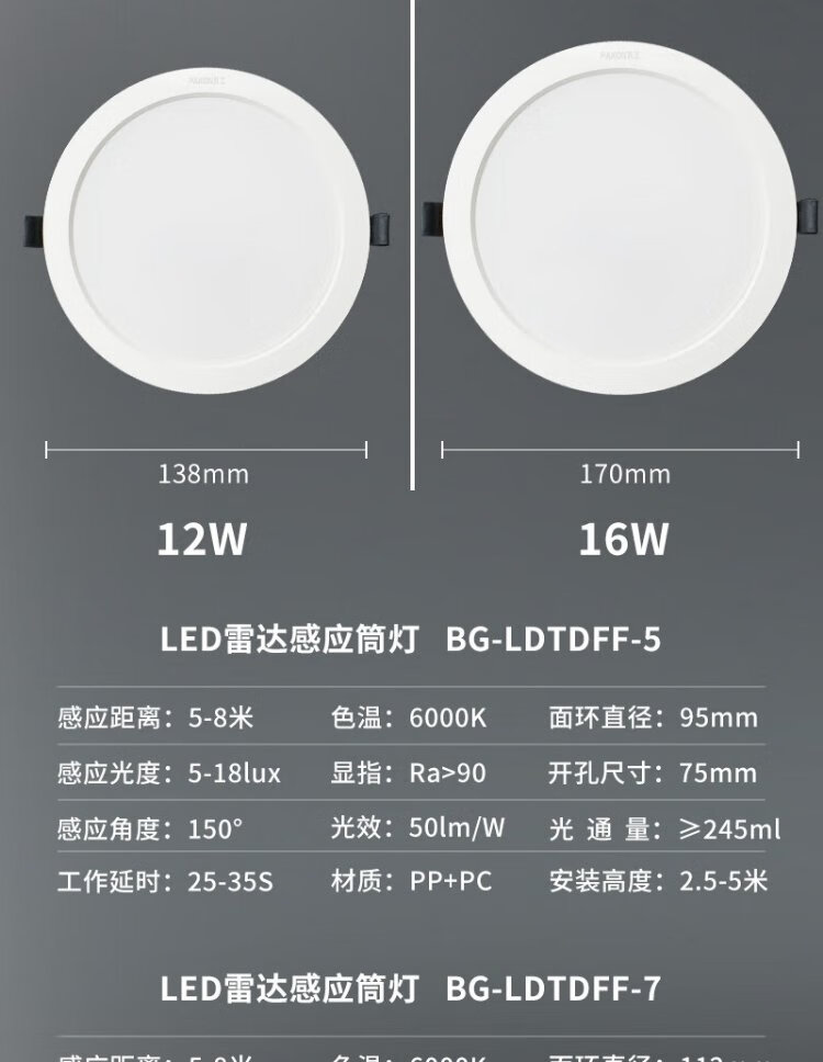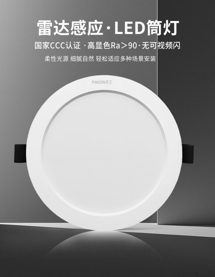 Beigong LED radar sensor downlight property industry embedded corridor living room human body sensor downlight 4.9W white light 6000K opening 75mm