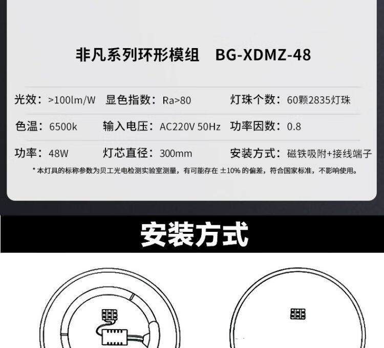 Beigong LED ceiling lamp wick modification and replacement lamp panel LED lamp panel patch 48 watt white light 6000K light strip light source module