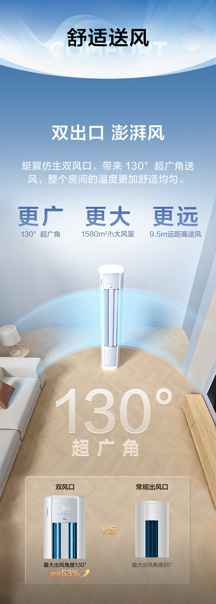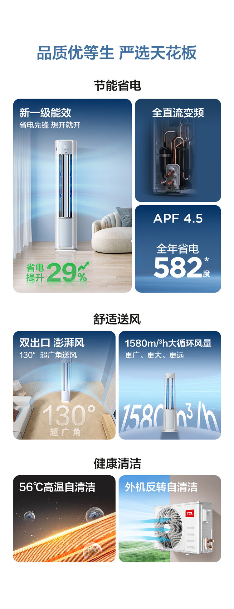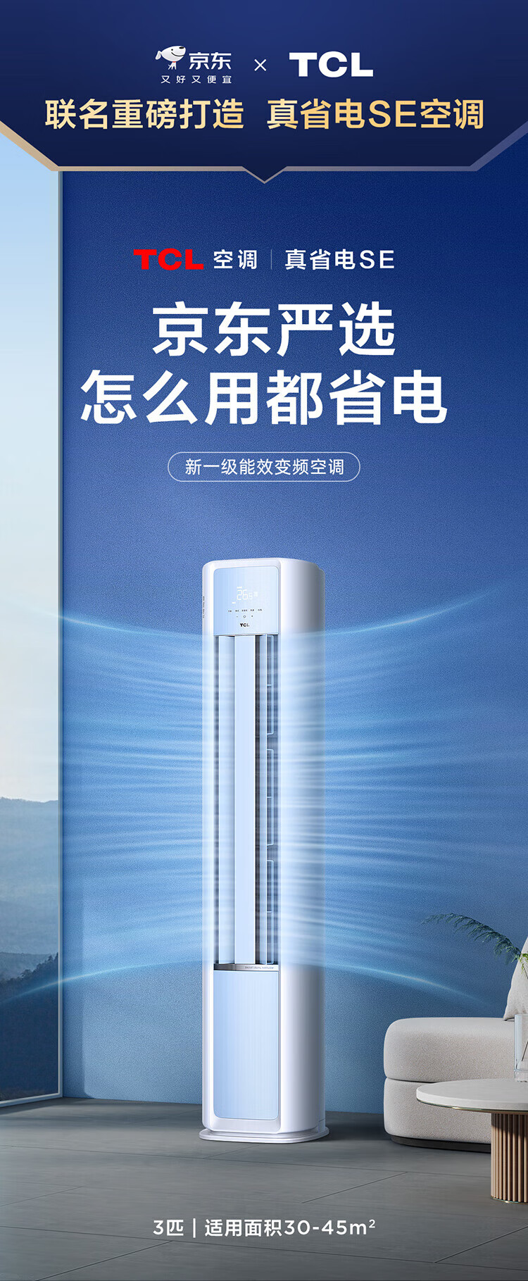 TCL air conditioner, JD.com co-branded true power-saving color, large 3 horsepower, super first-class energy efficiency inverter, cabinet machine with double air outlets, vertical cabinet type KFR-72LW/JD21+B1 national subsidy