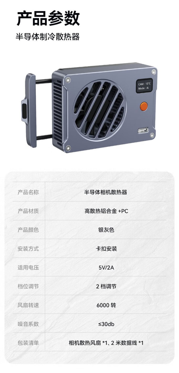 Filmmaker camera radiator Sony a7m4/ZVE10/A7C Canon R5/R6 Fuji XT4 micro-SLR live shooting semiconductor ultra-quiet cooling artifact