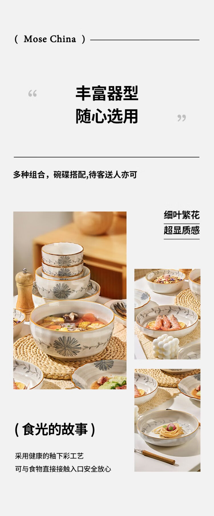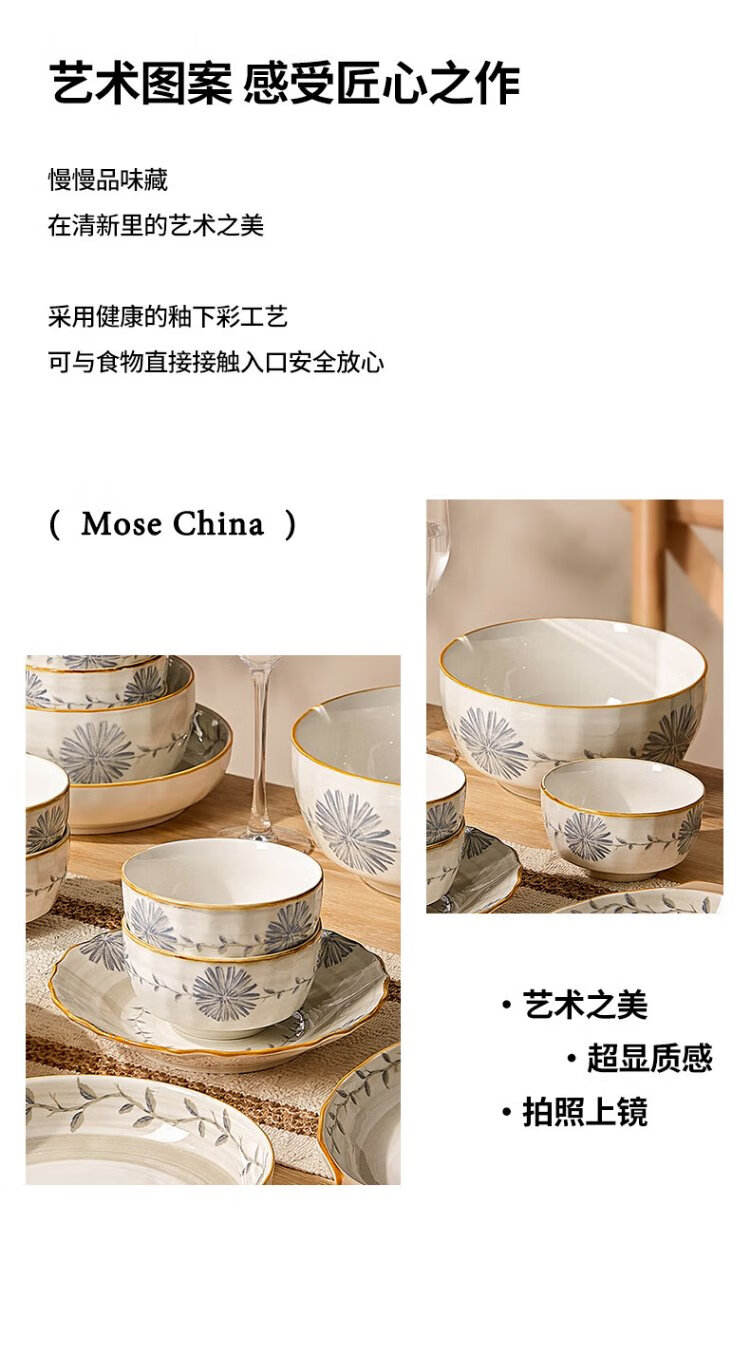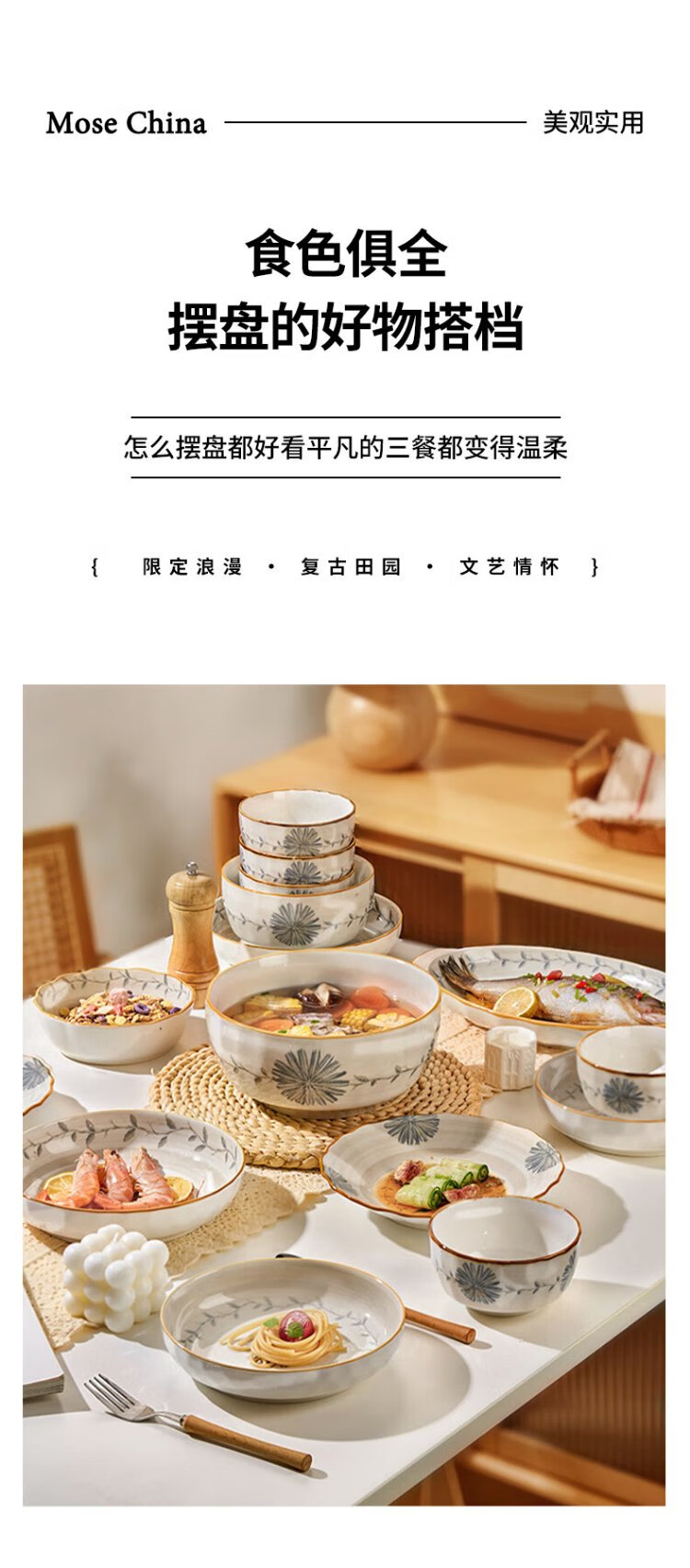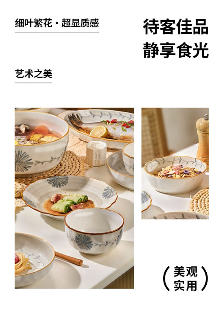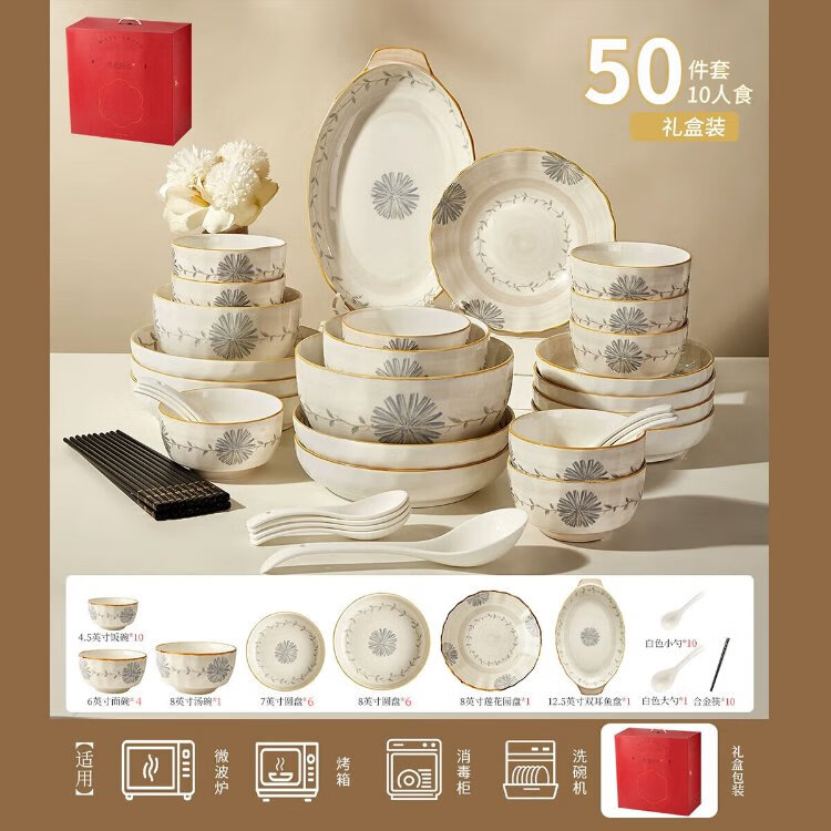 Ink Chinese dish set household bowls and plates underglaze color bowls housewarming gift ceramic tableware set 50 pieces
