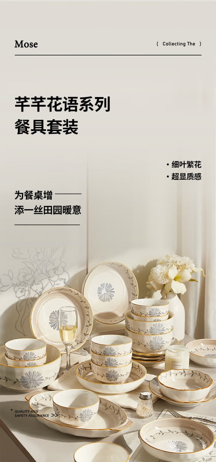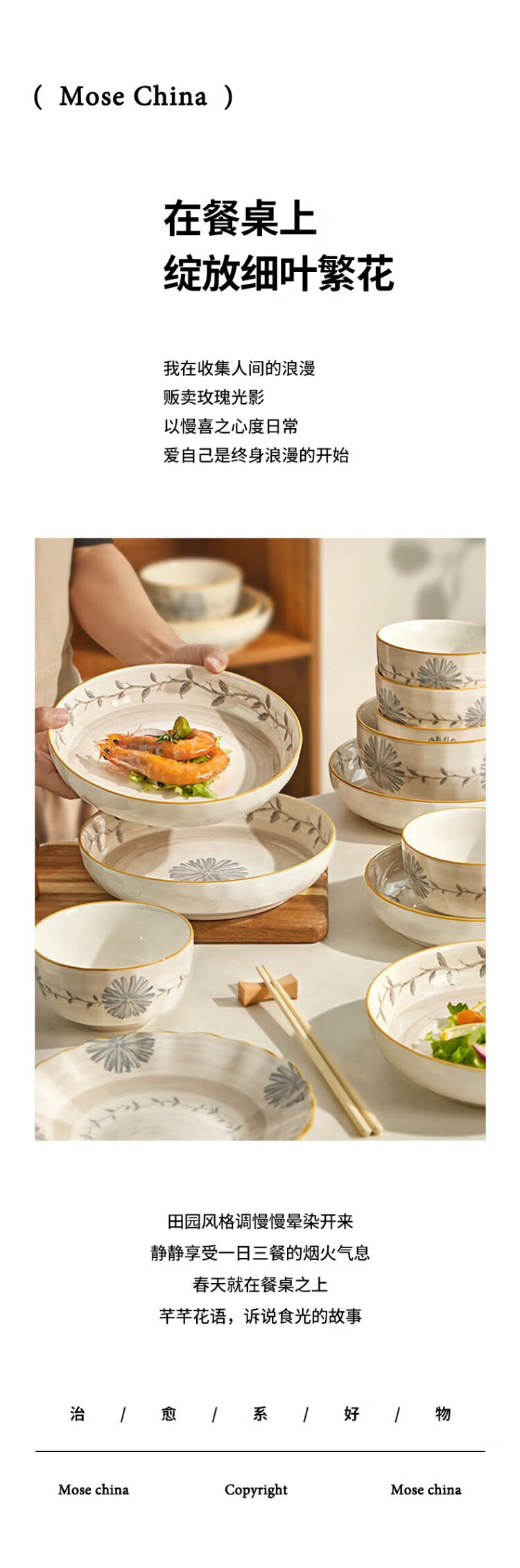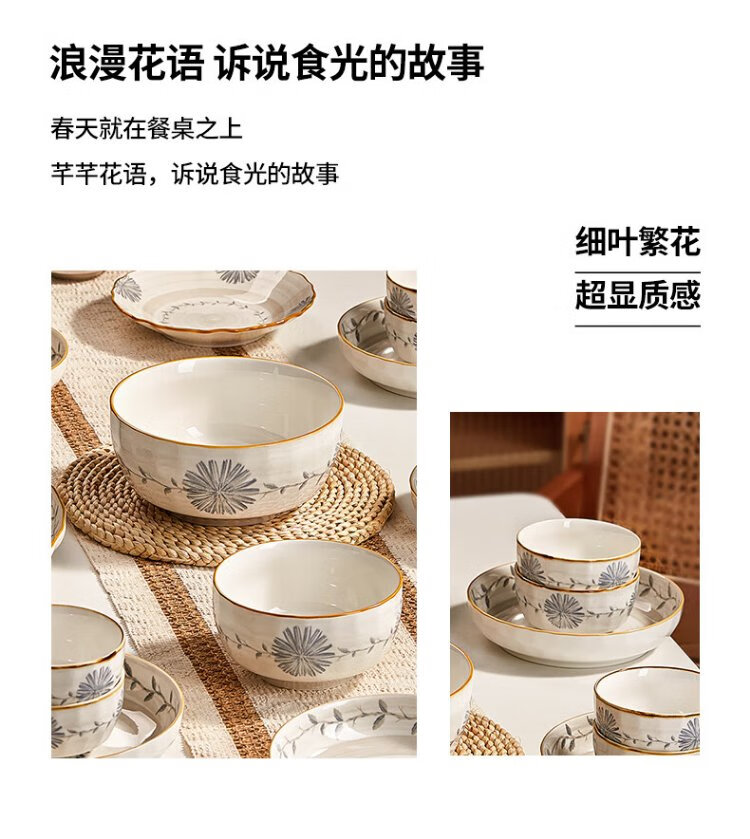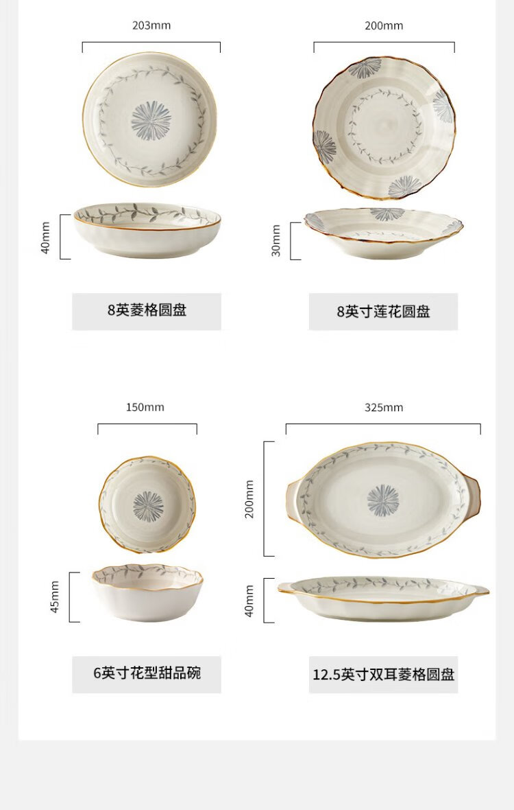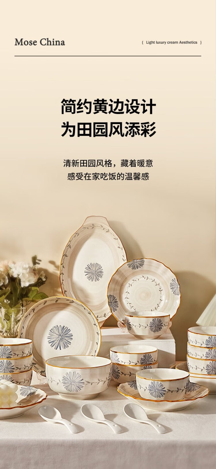 Ink Chinese dish set household bowls and plates underglaze color bowls housewarming gift ceramic tableware set 50 pieces