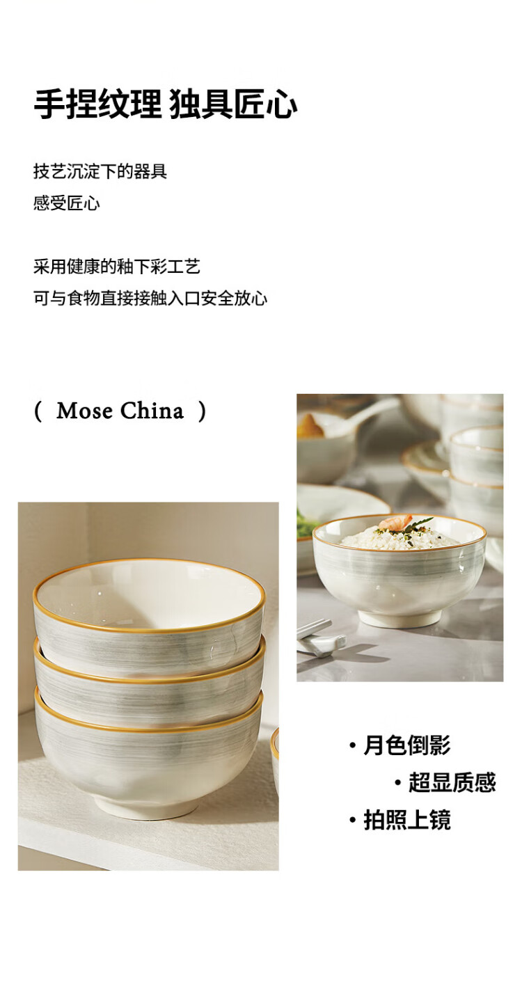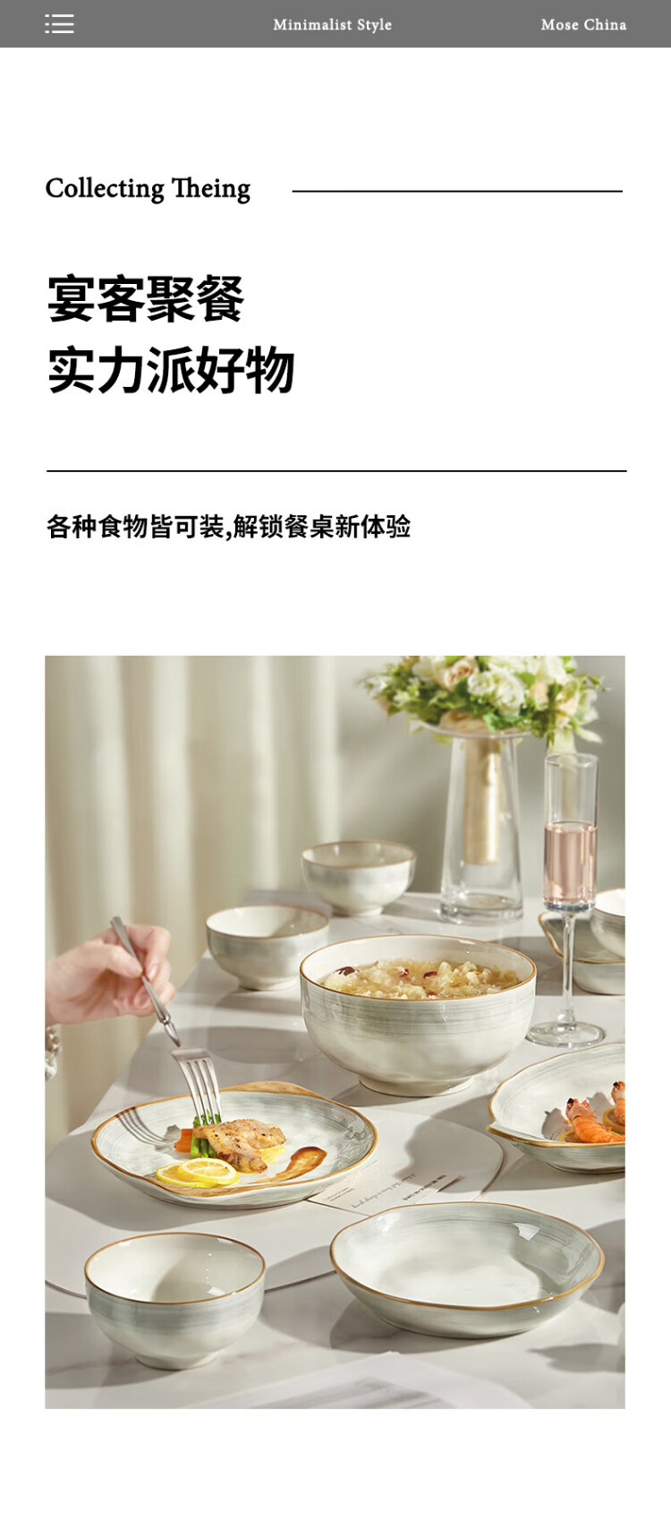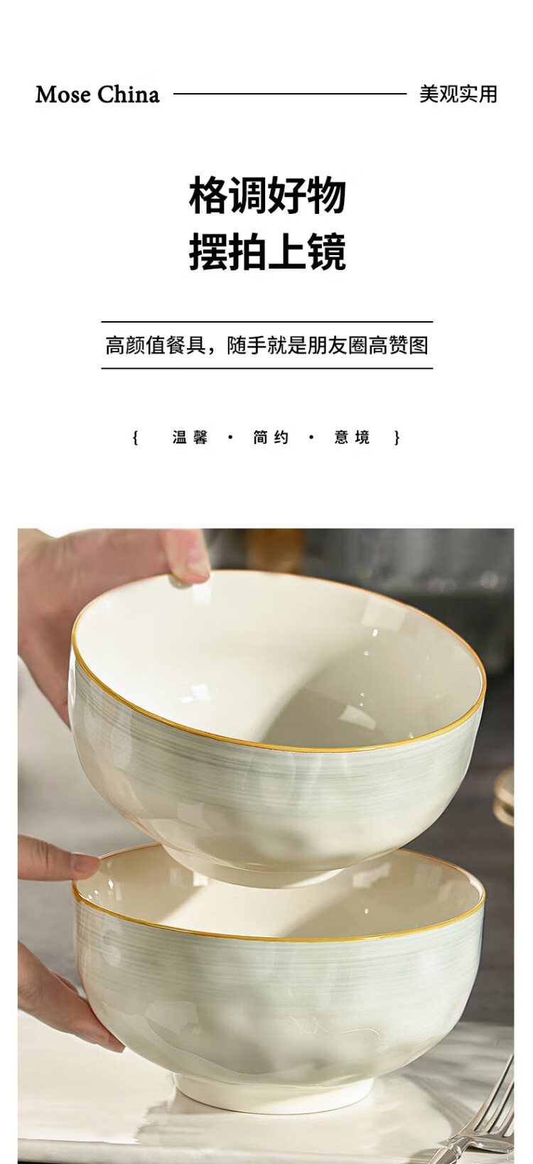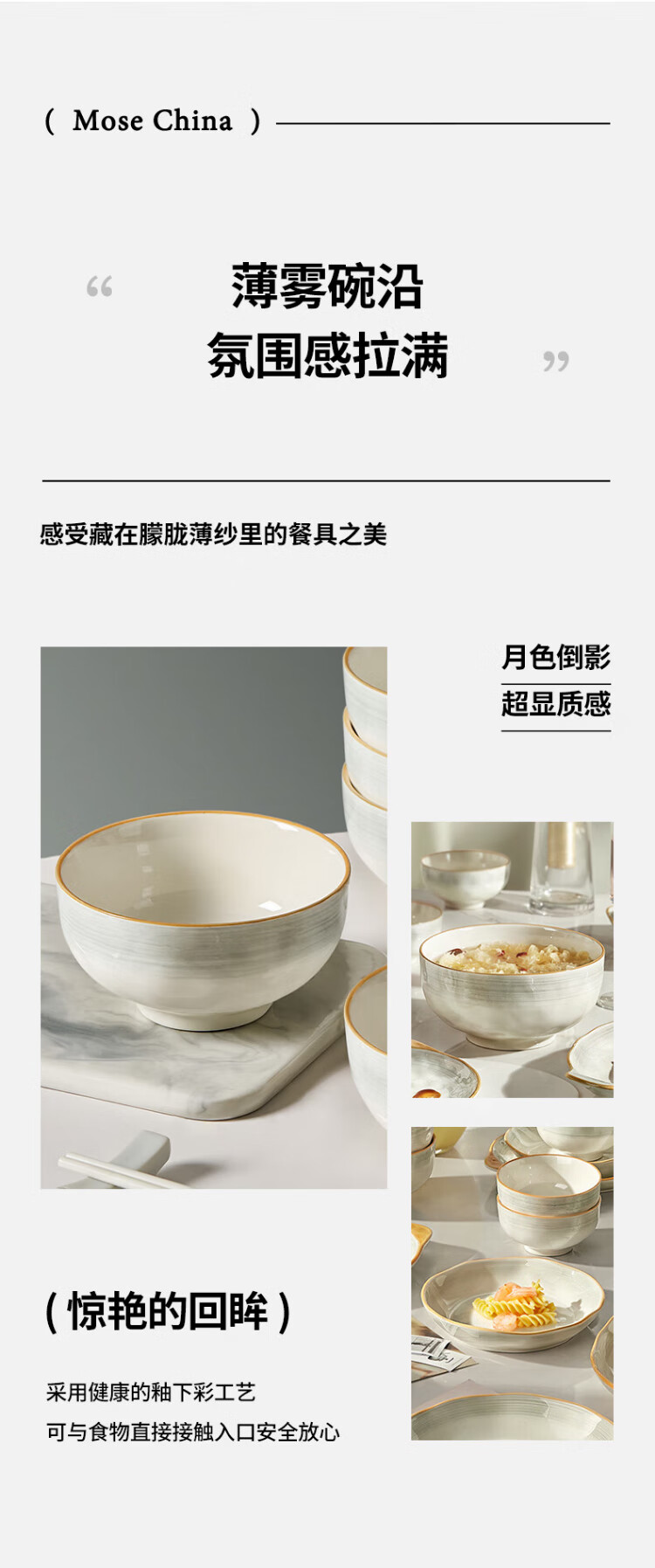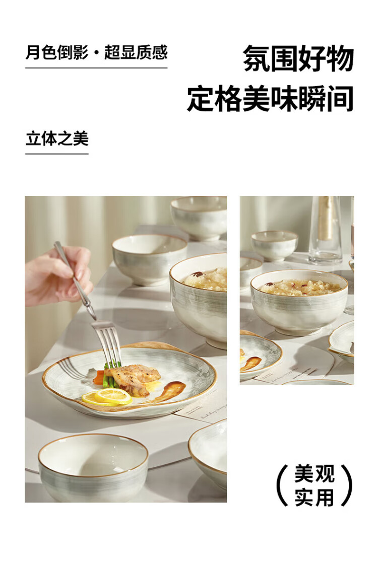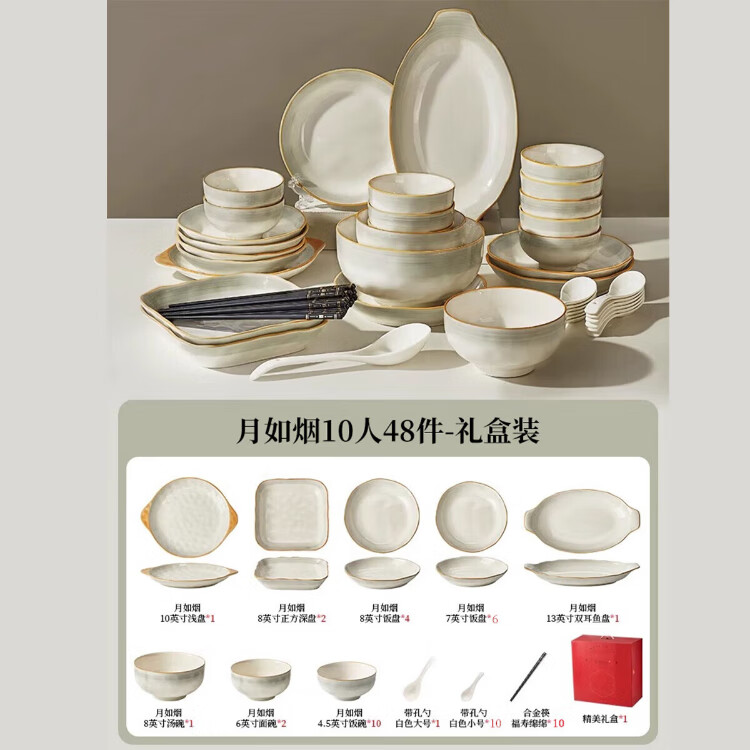 Ink-colored bowls and plates household set underglaze color ceramic bowls and plates simple bowls, bowls, chopsticks and tableware set 48 pieces as a housewarming gift