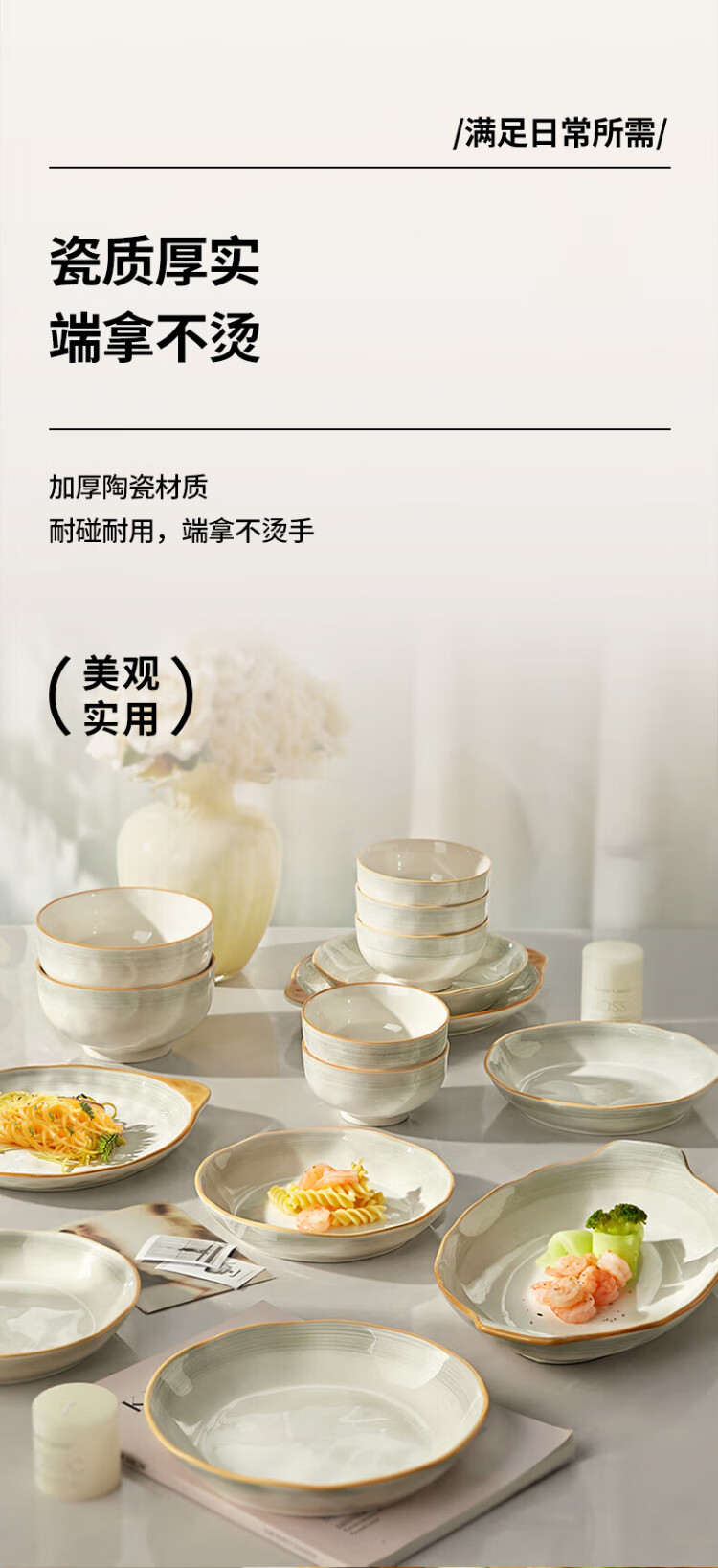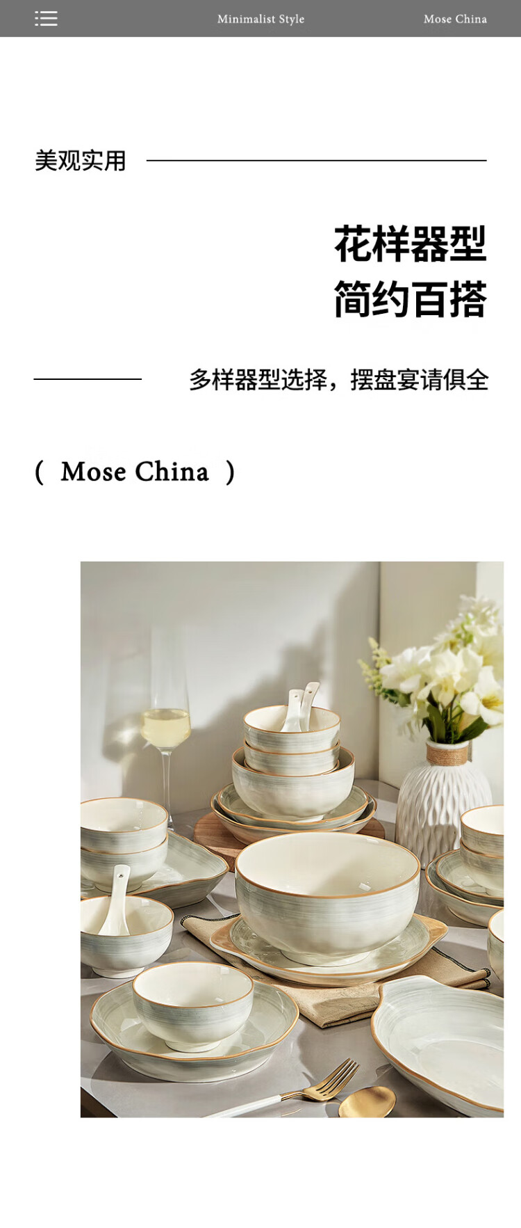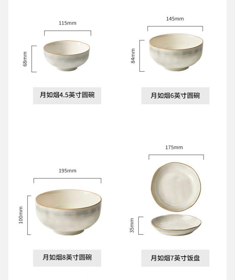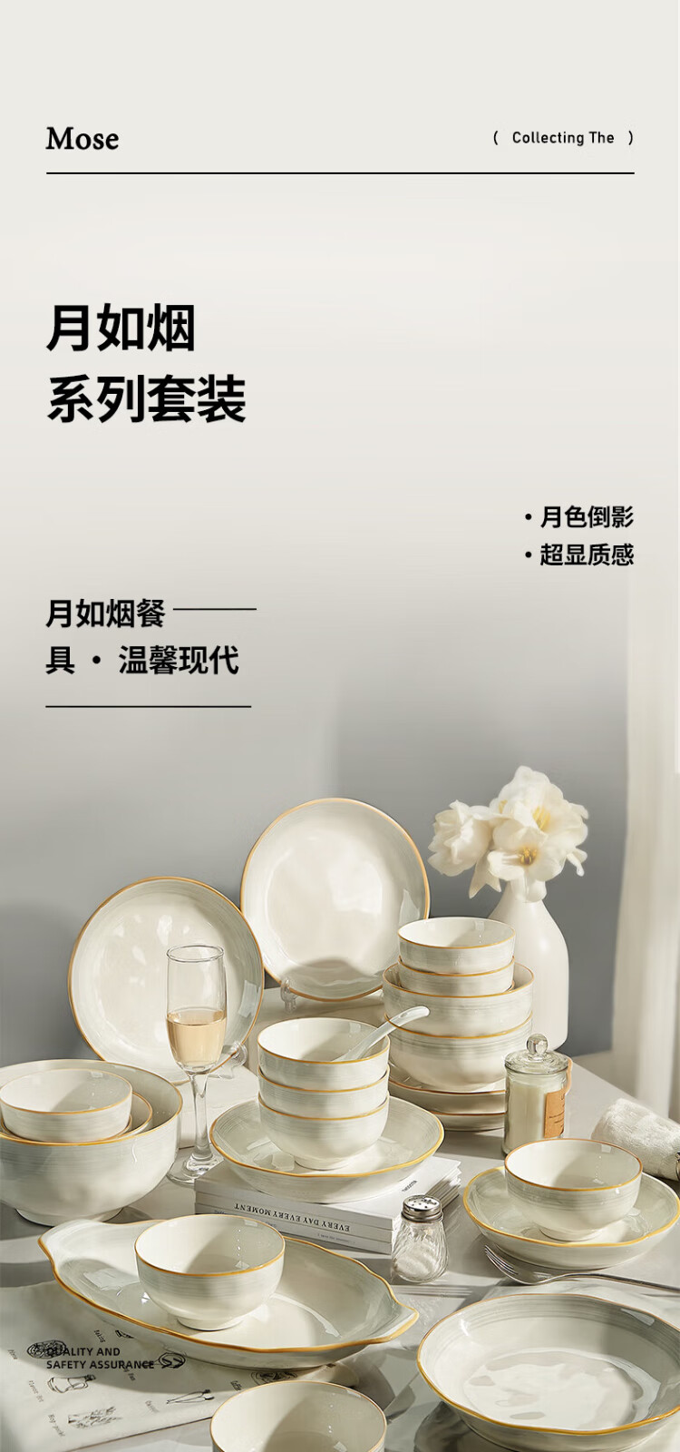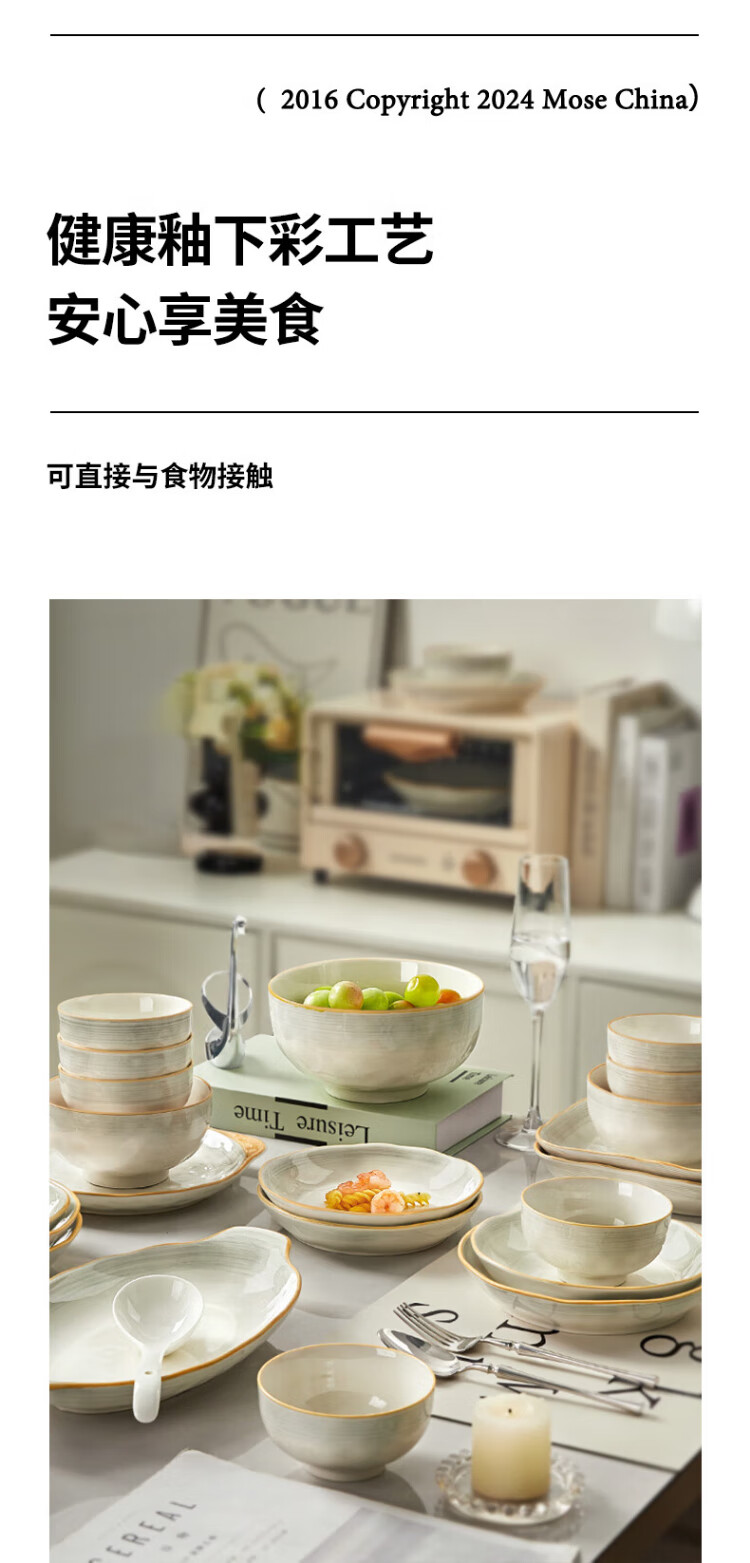 Ink-colored bowls and plates household set underglaze color ceramic bowls and plates simple bowls, bowls, chopsticks and tableware set 48 pieces as a housewarming gift