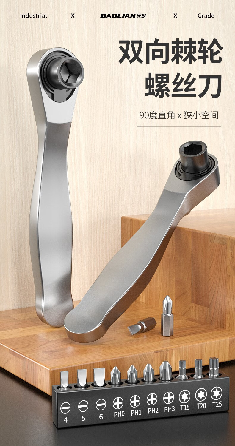 Baolian ratchet wrench 72 teeth two-way dual-purpose ratchet screwdriver inner hexagon set cross one-word bit wrench