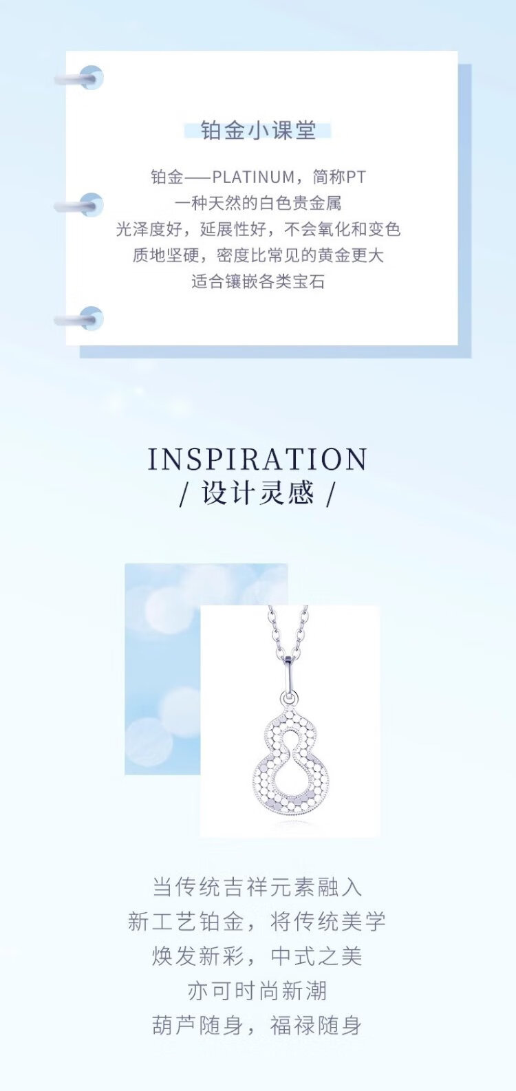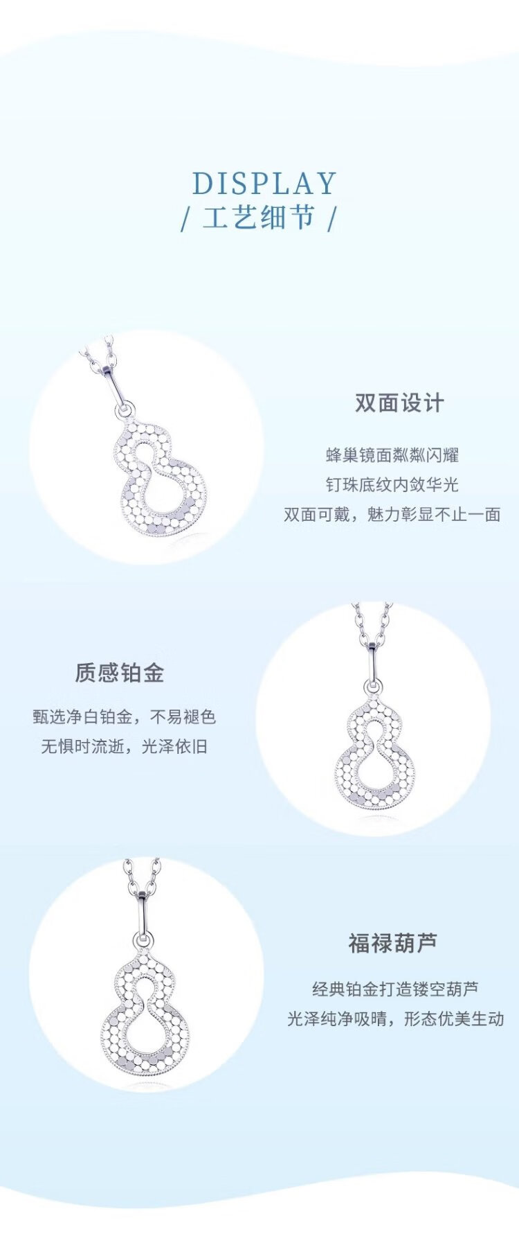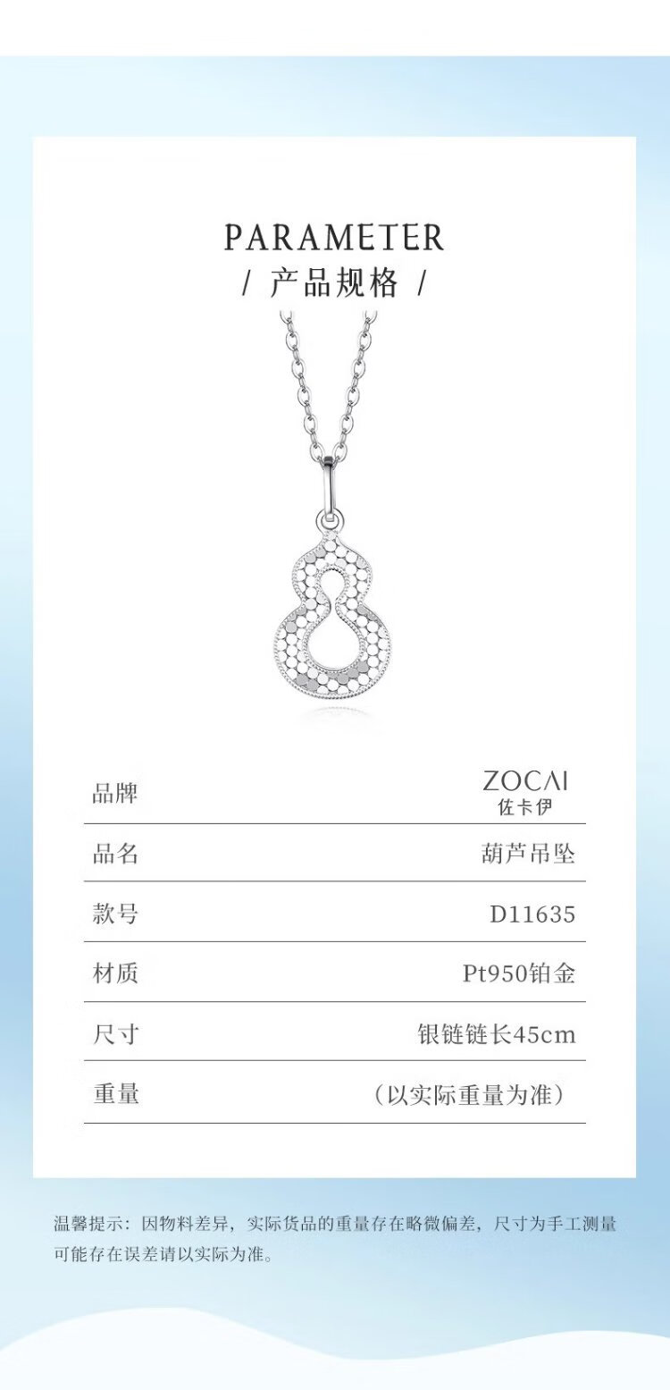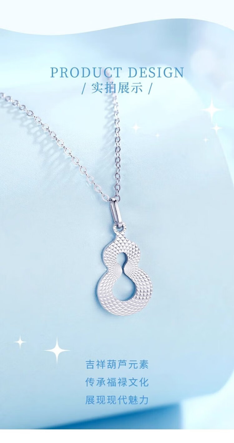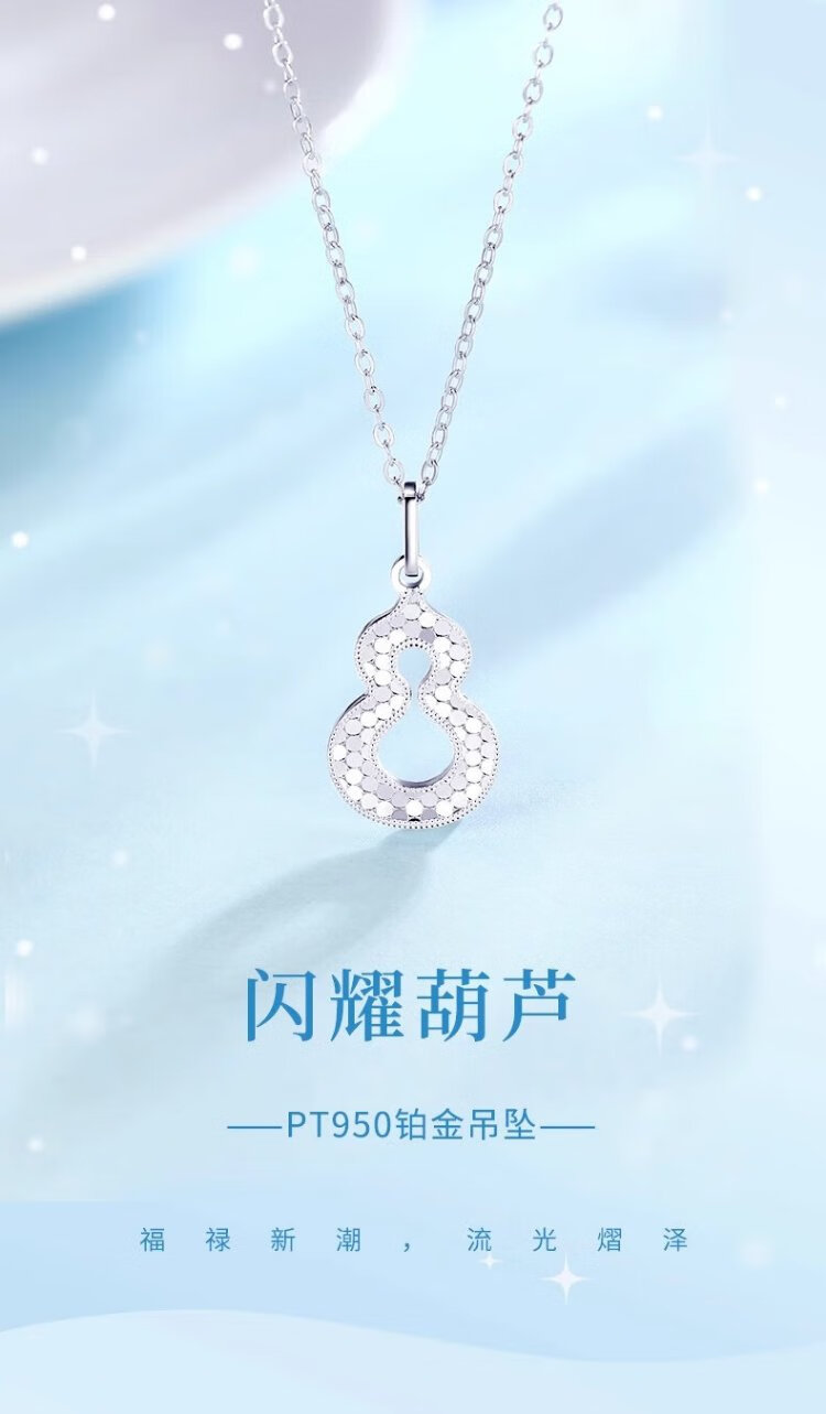 Zokai platinum pendant PT950 gourd necklace crushed ice simple versatile romantic Chinese Valentine's Day gift about 1.85-1.9g