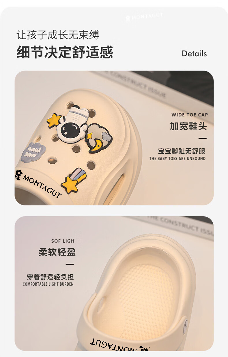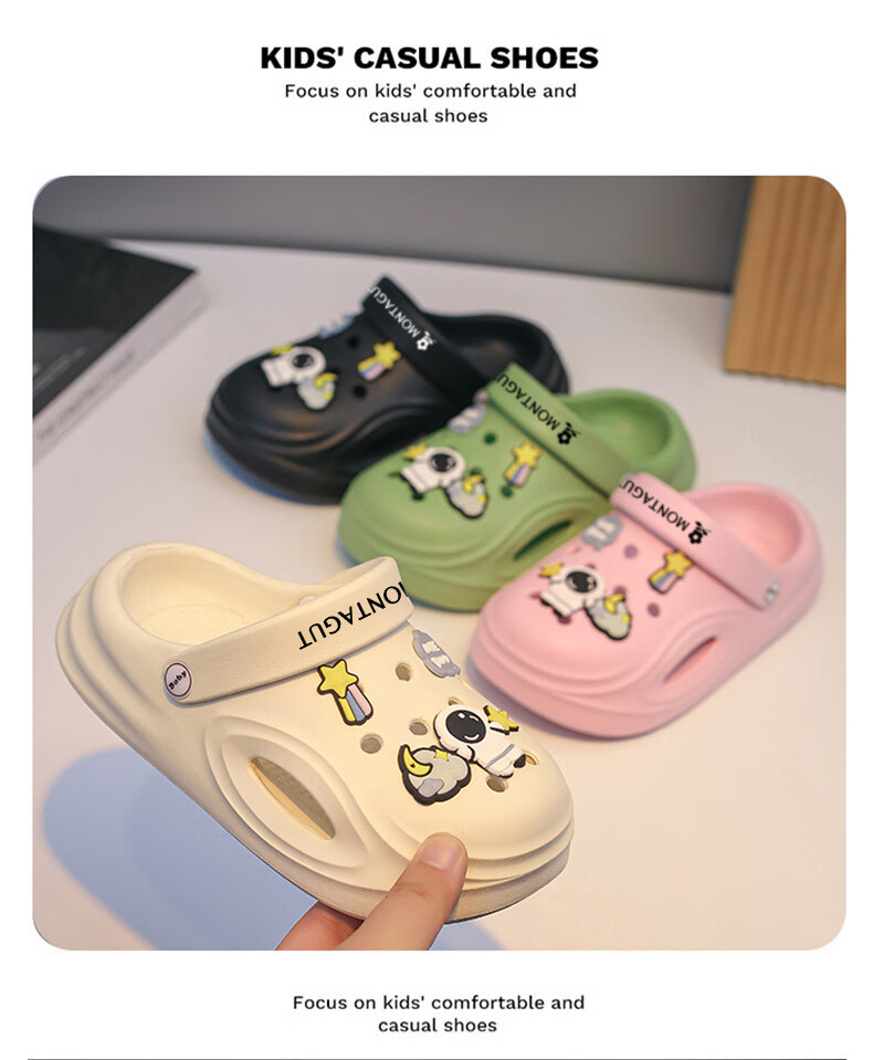 Montagut Children's Slippers Boys' Croc Shoes Summer Shoes Big Children's Sandals Slippers 6-12 Years Old Anti-Slip Sports Baotou Beach Shoes