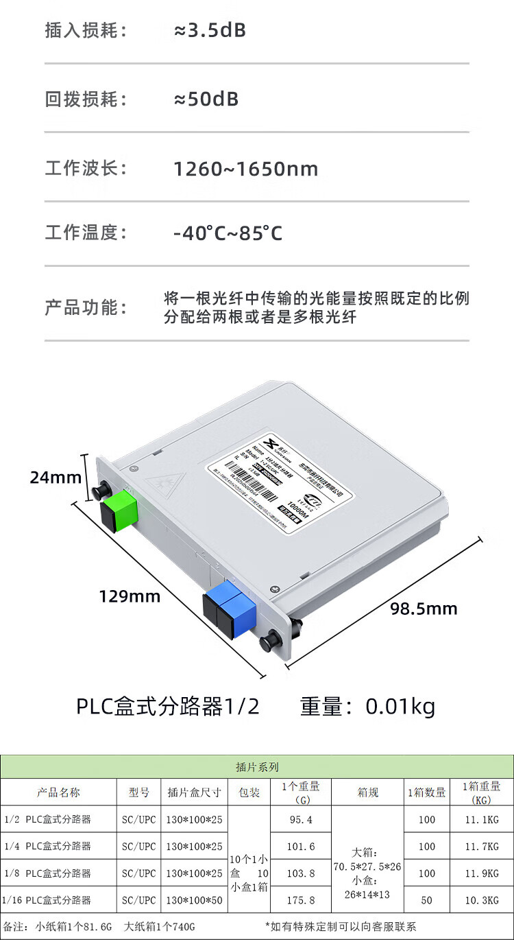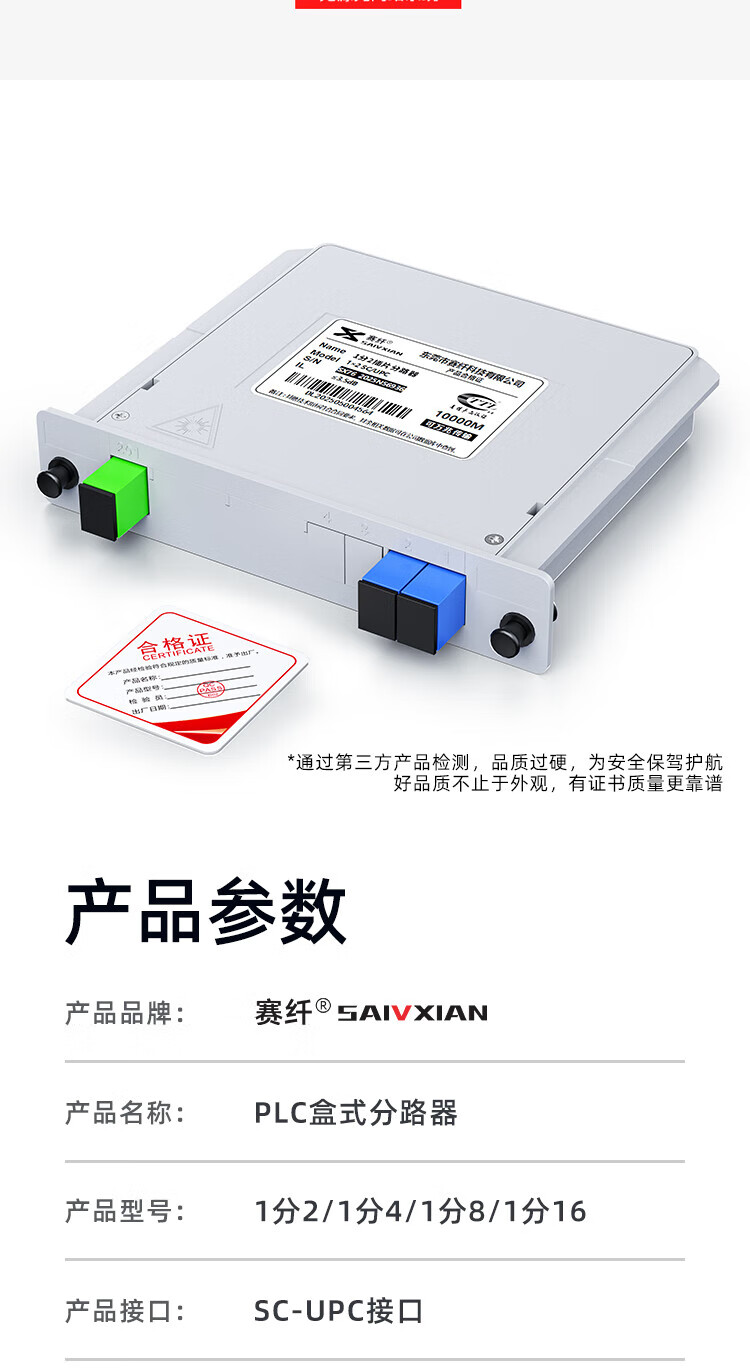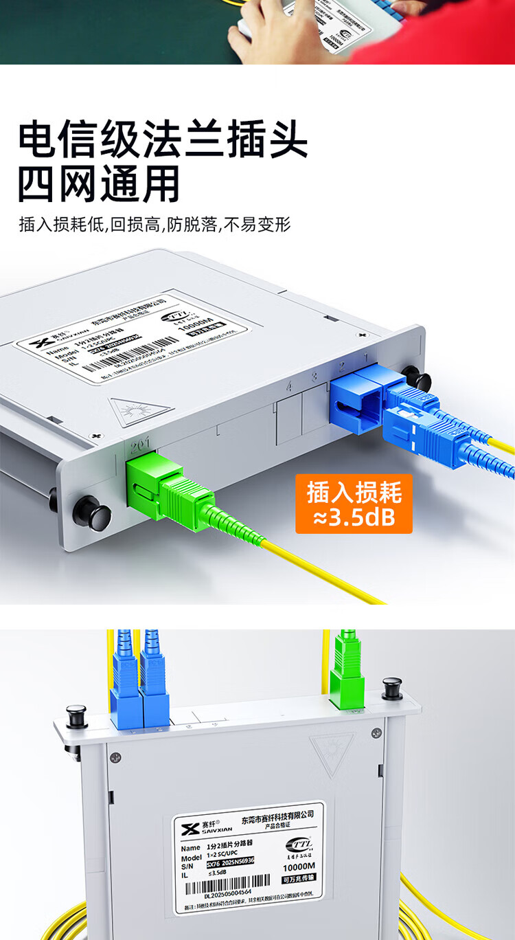 Sai Fiber optical fiber splitter 1 minute 2 plug-in card type carrier-grade optical fiber splitter single-mode square head SC/UPC pigtail mobile Unicom Telecom PLC box splitter 1/2