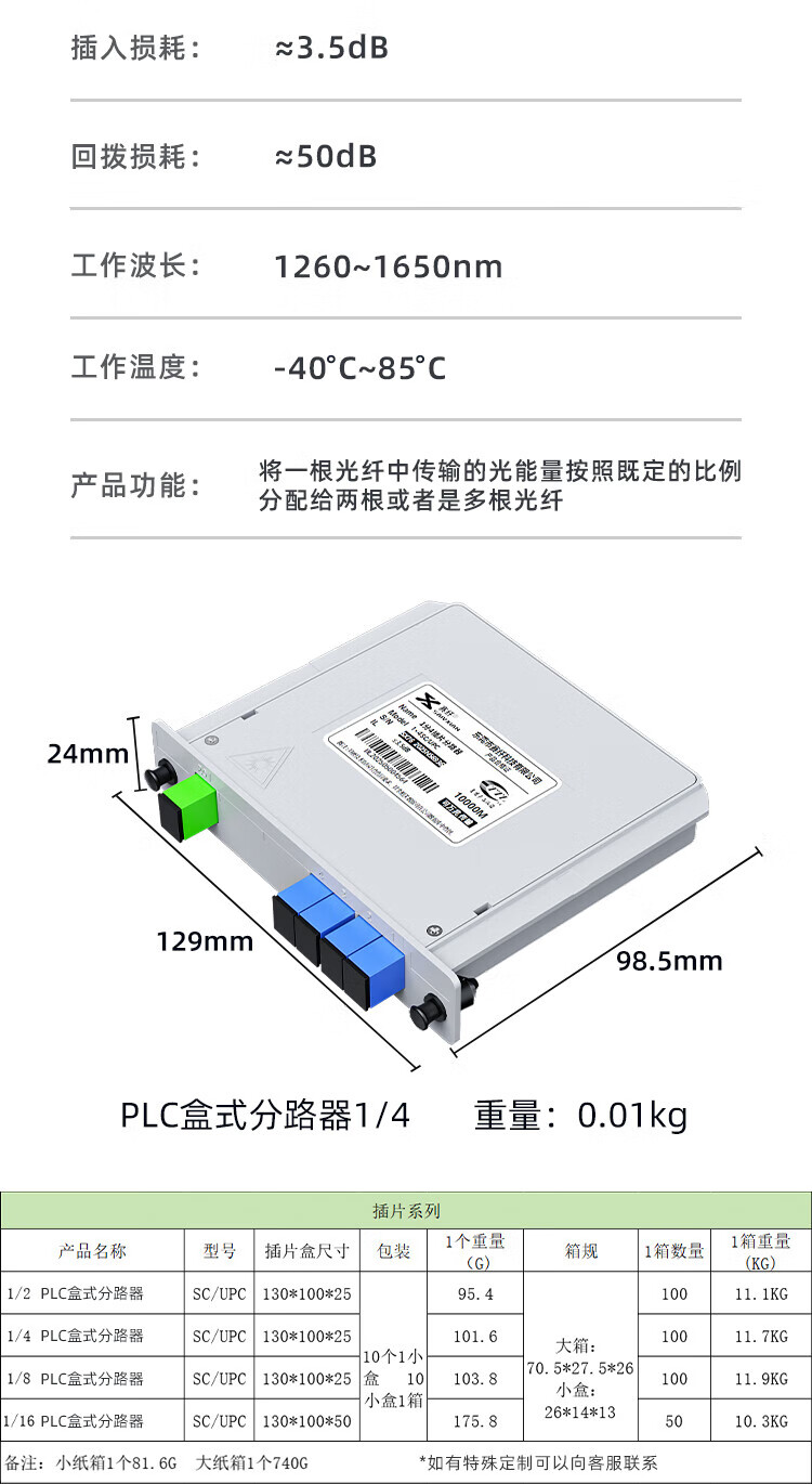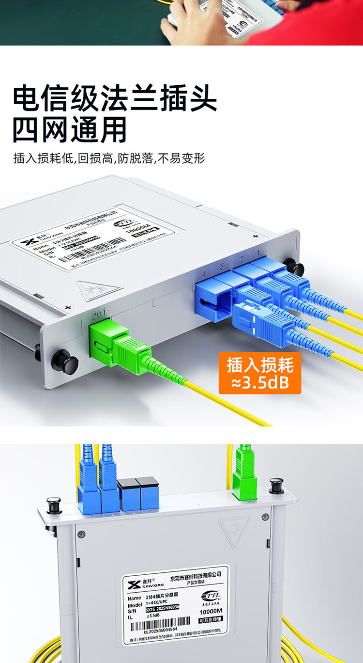 Sai Fiber optical fiber splitter 1 minute 4 plug-in card type carrier-grade optical fiber splitter single-mode square head SC/UPC pigtail mobile Unicom Telecom PLC box splitter 1/4