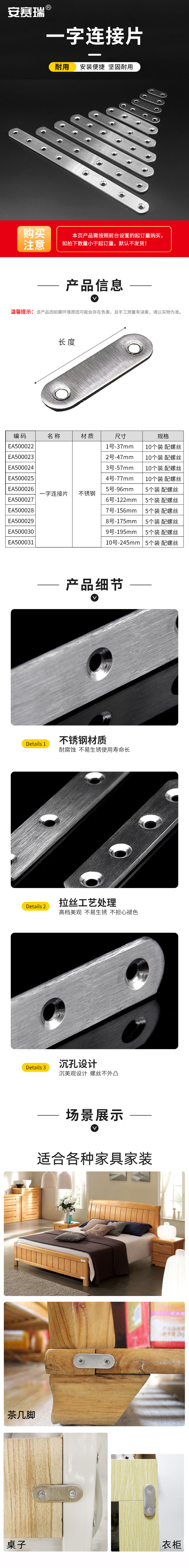 Ansery one-word connecting piece stainless steel connector wood plank plane connection code flat corner piece corner code one-word corner code fixing piece 5 pcs 96mm EA500026 pcs