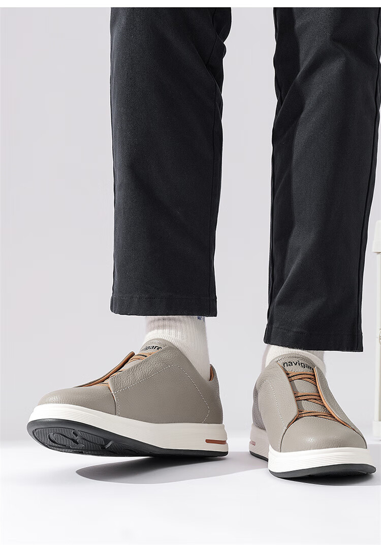 Navikel Italian dinghy leather low-top sneakers breathable business versatile casual shoes one-leg men's shoes off-white