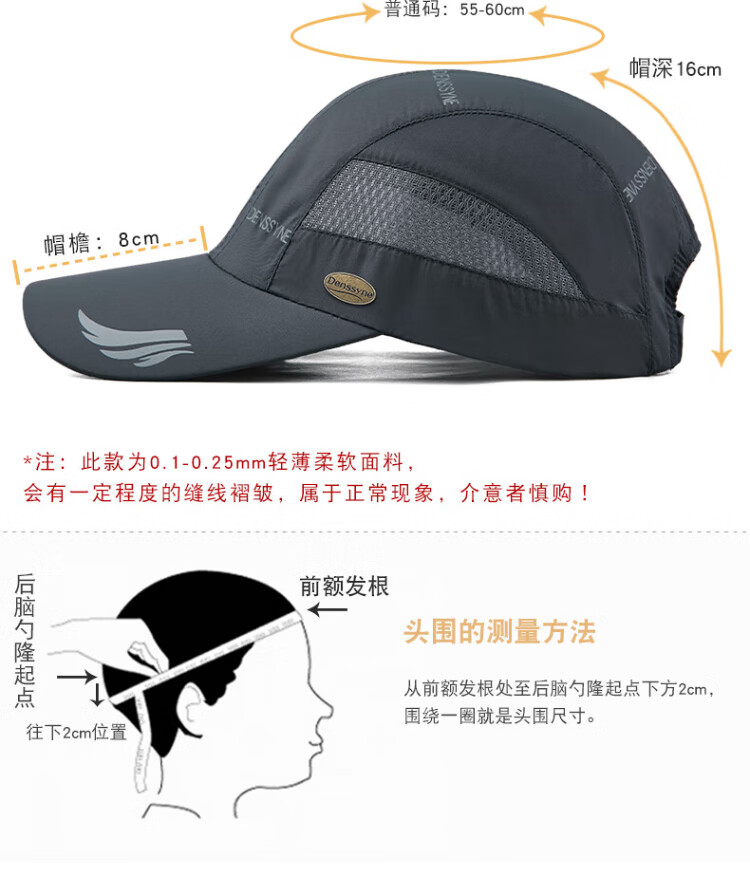 Desina quick-drying hat men's summer baseball cap thin mesh breathable sun hat outdoor running sports sun protection sun hat
