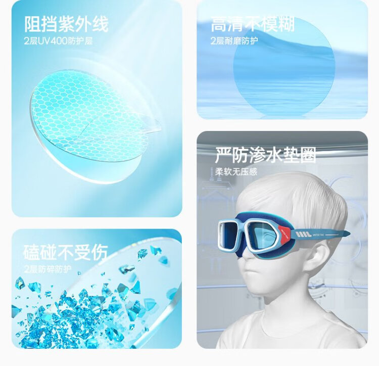 WATERTIME/Shuichuan Children's Swimming Goggles 6-12 years old large-frame swimming goggles professional anti-fog swimming goggles 10-15 years old Seaside Blue