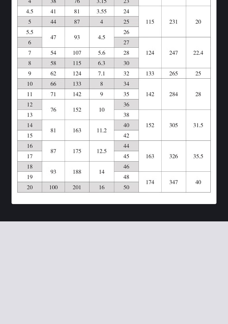 76.2 81.3 86.4 91.5 96.5 101.6 106.7 112 117 122 127 132 137 142