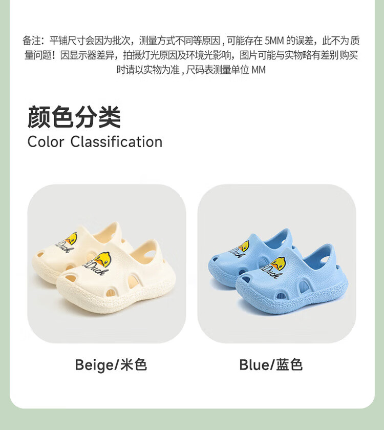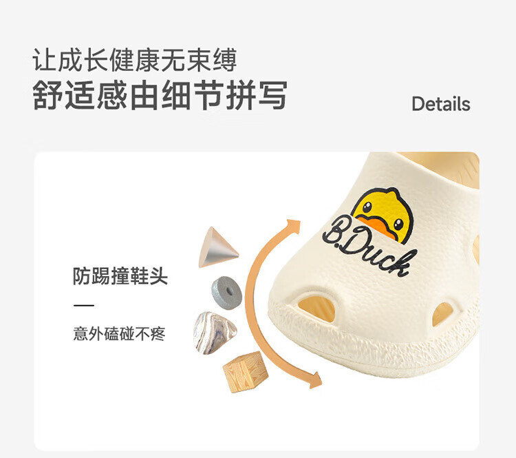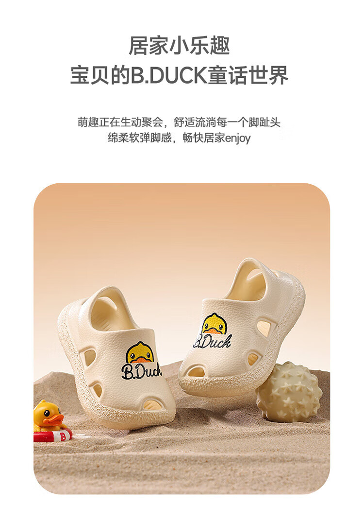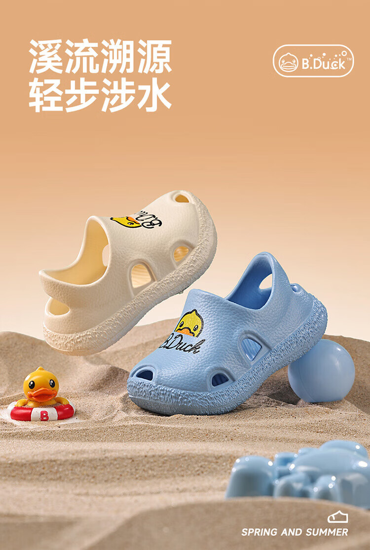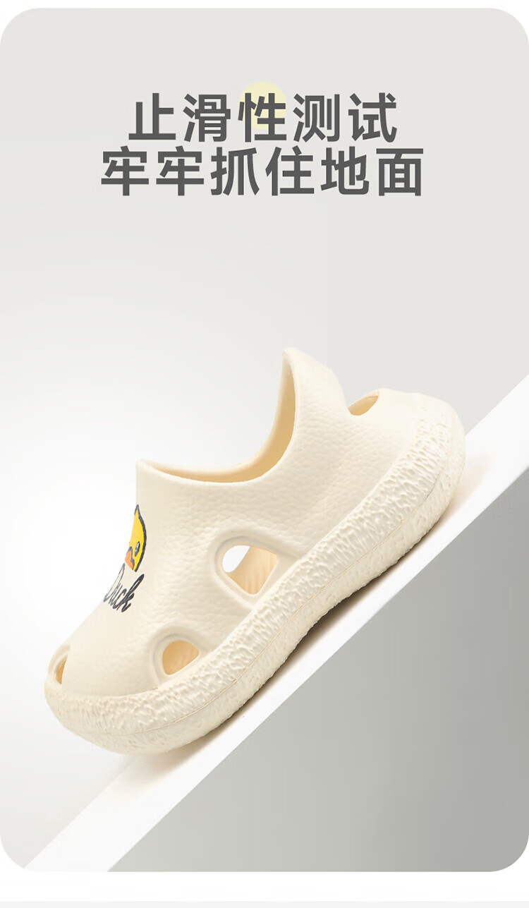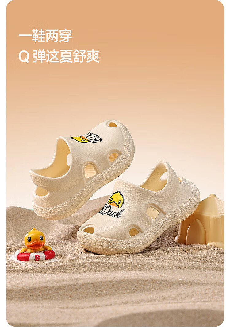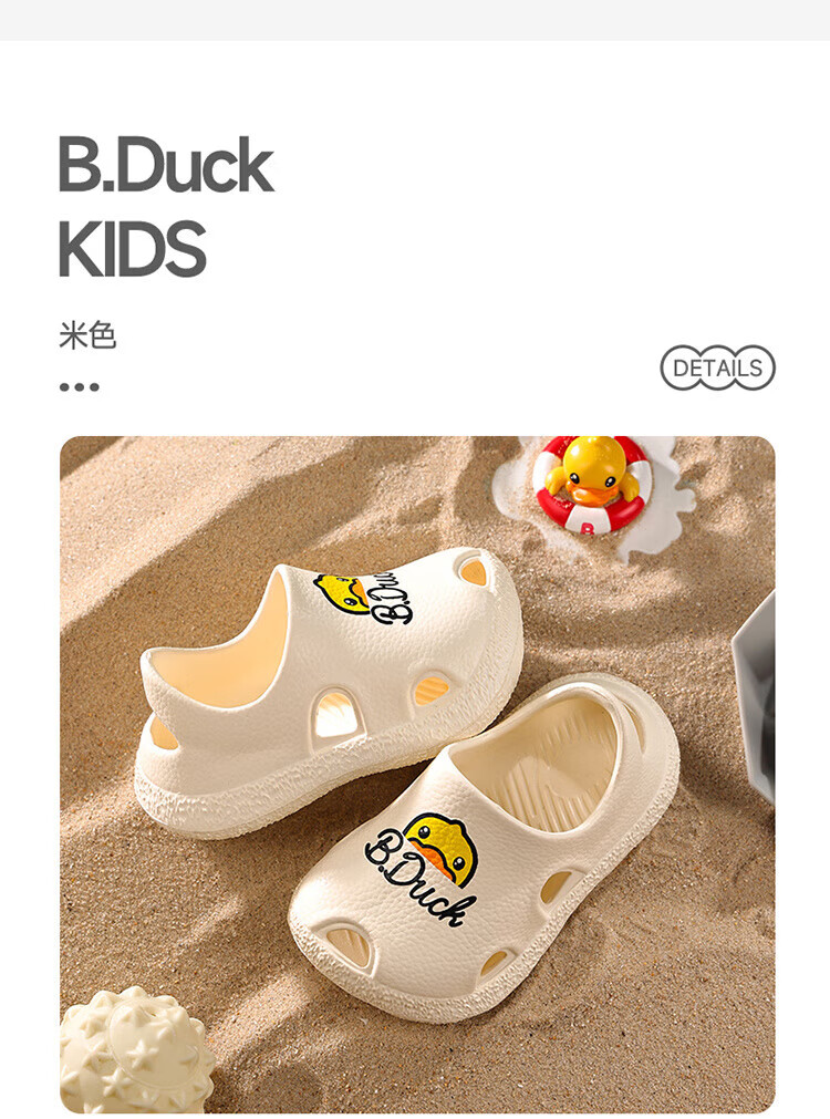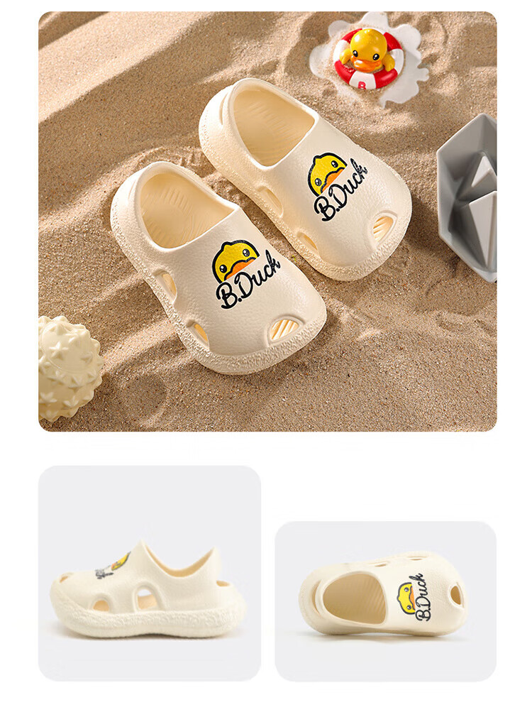 B.Duck little yellow duck children's shoes children's garden shoes boys all-inclusive beach shoes girls lightweight hole sandals 5968 beige 34