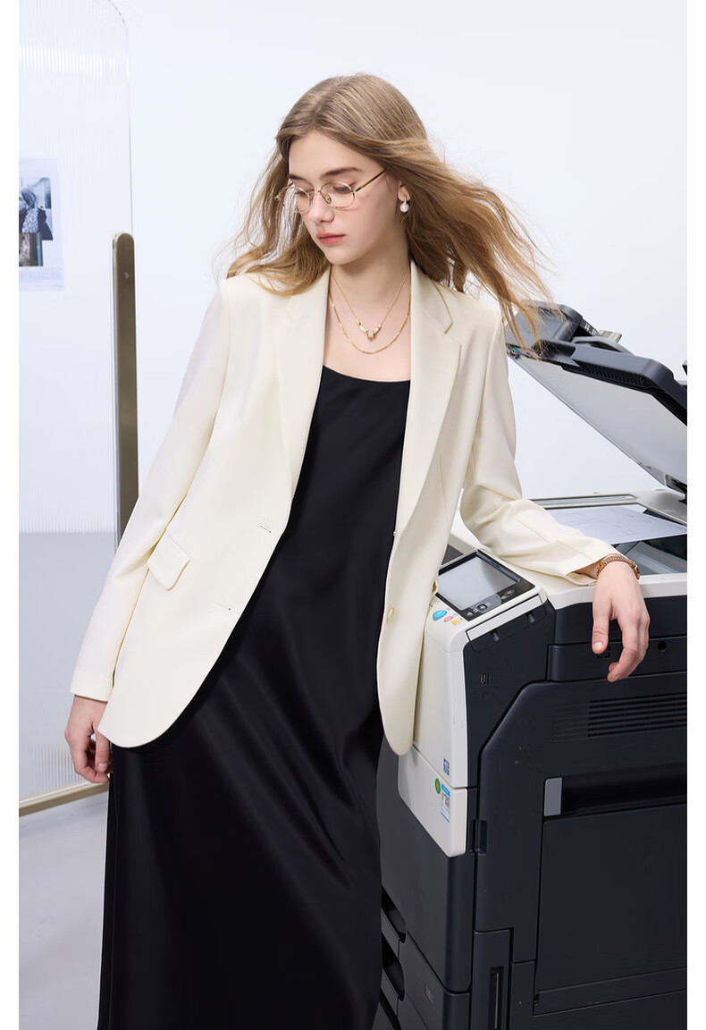Sancai 2025 Spring New Light Workplace Blazer Right Shoulder Long Sleeve Top Single Breasted Commuting Z