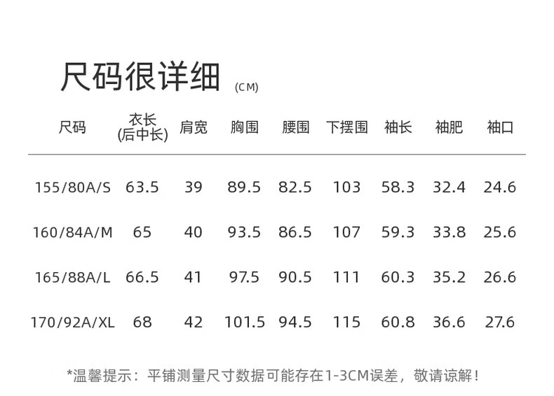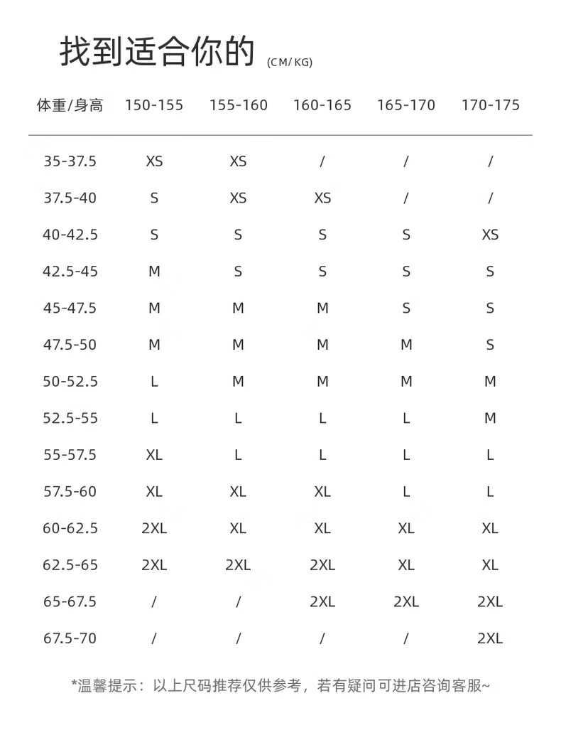 China (cm) 160-165/84-86 165-170 / 88-90 167-172 / 92-96 168-173 / 98-102 170-176 / 106-110