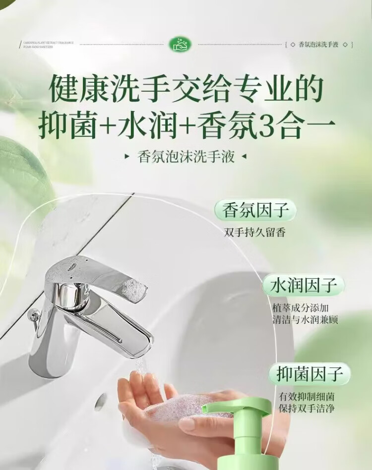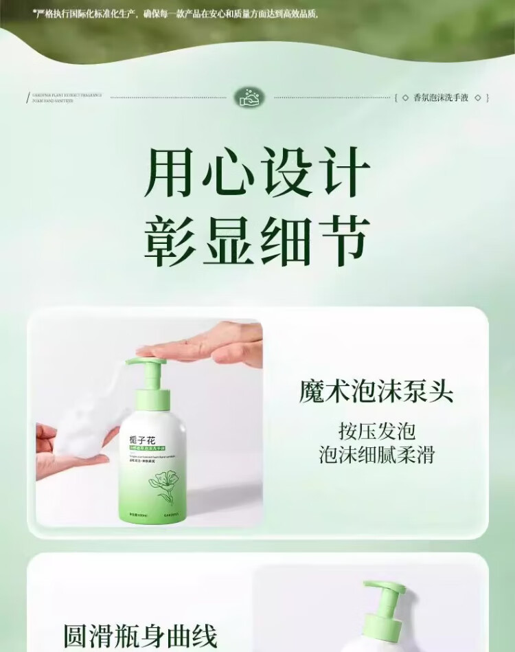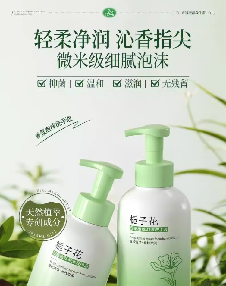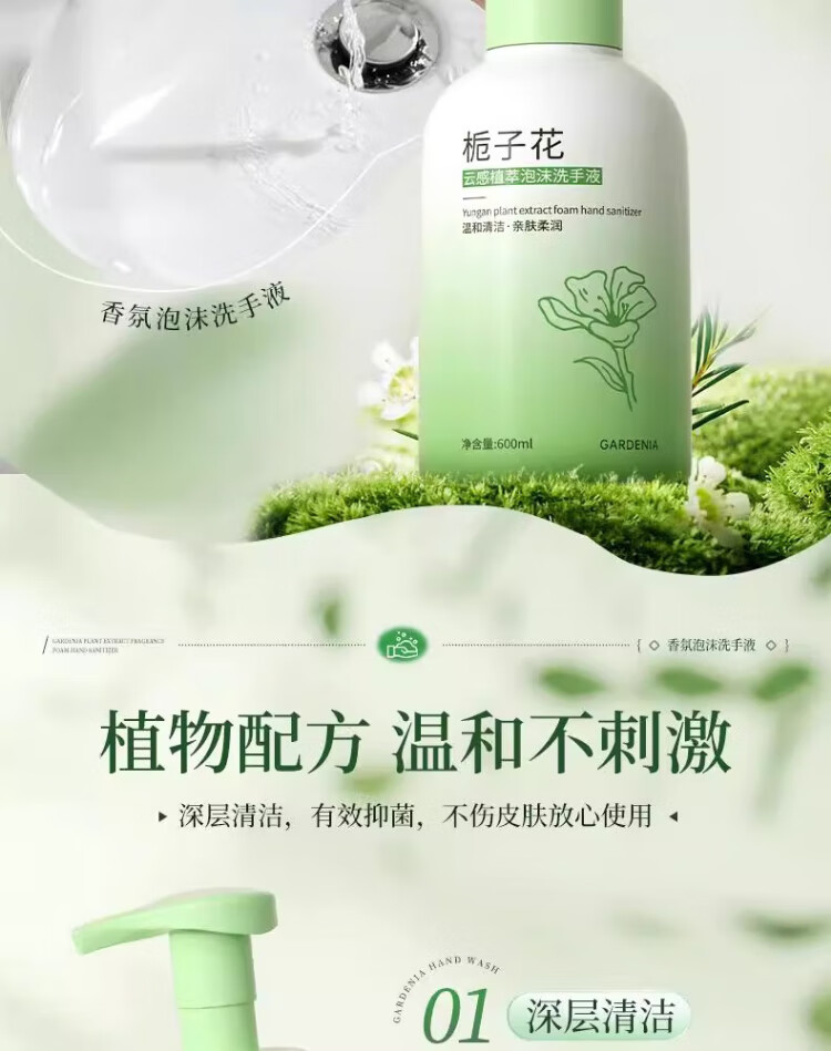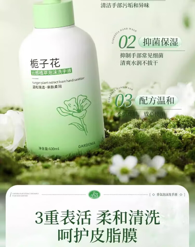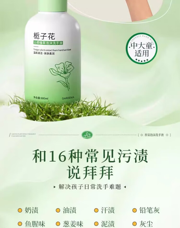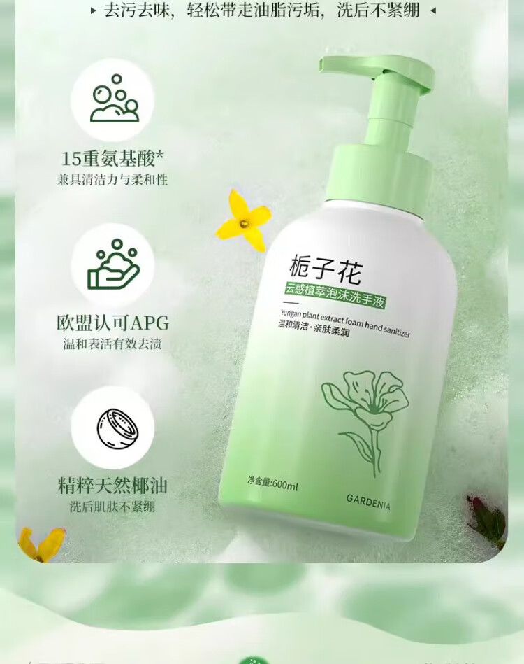 Ailan Gona Gardenia Foam Hand Sanitizer 600ml Children's Baby Bubble Fragrance Large Bottle Hand Sanitizer to Remove Mites and Antibacteria Refill