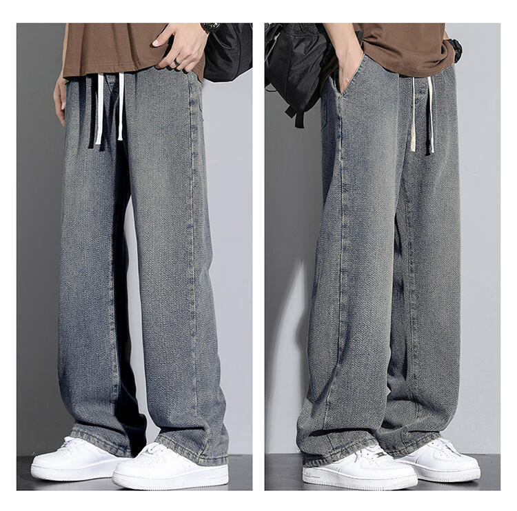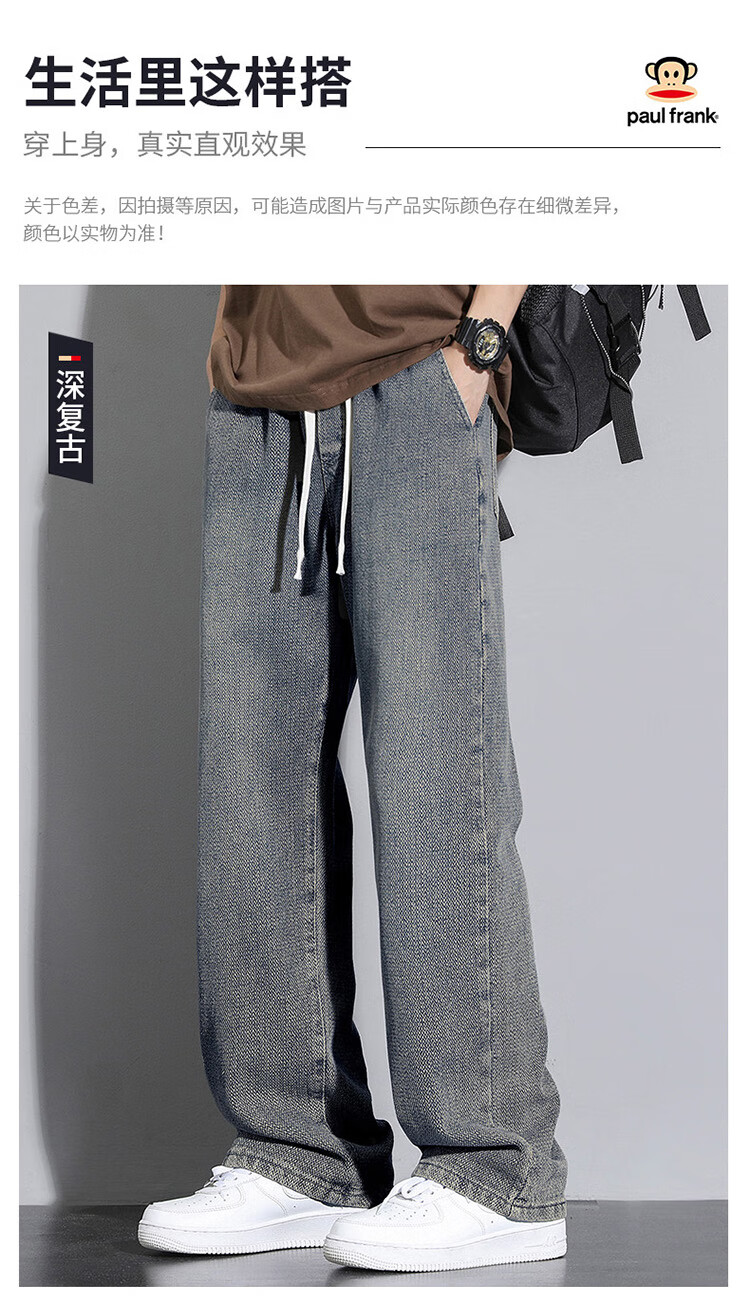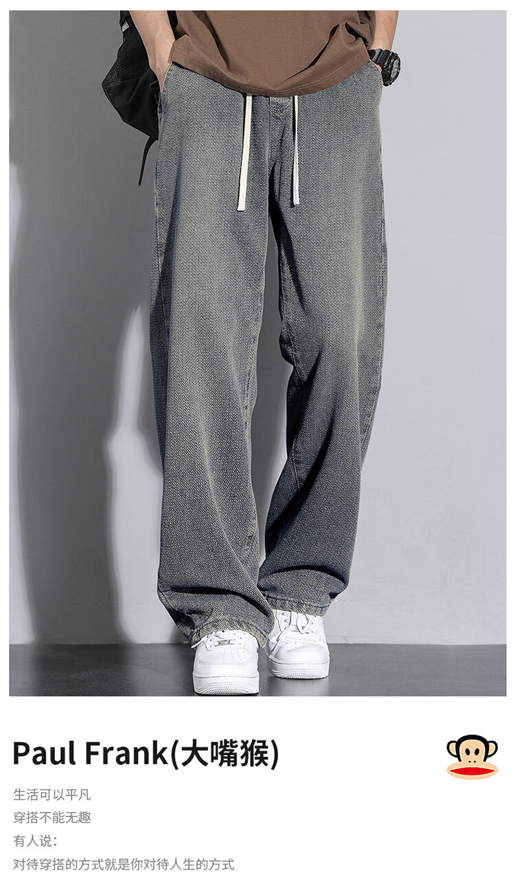 大嘴猴(paul frank)牛仔裤男秋季星空纹裤子男士宽松潮阔腿休闲裤男裤 深复古色 XL