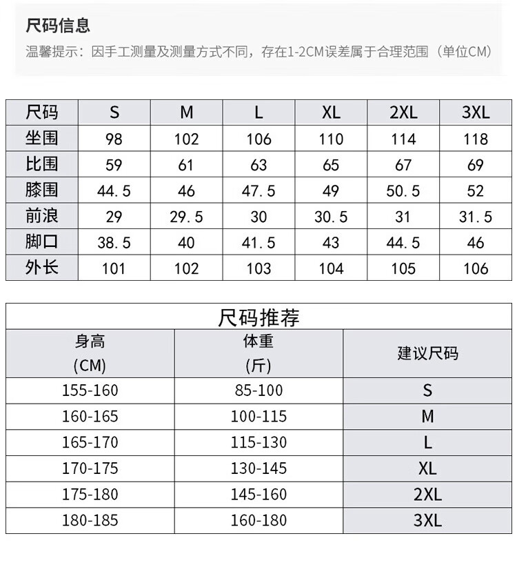 Outseam (cm) 99 cm 101.5 cm 104 cm 106.5 cm 109 cm
