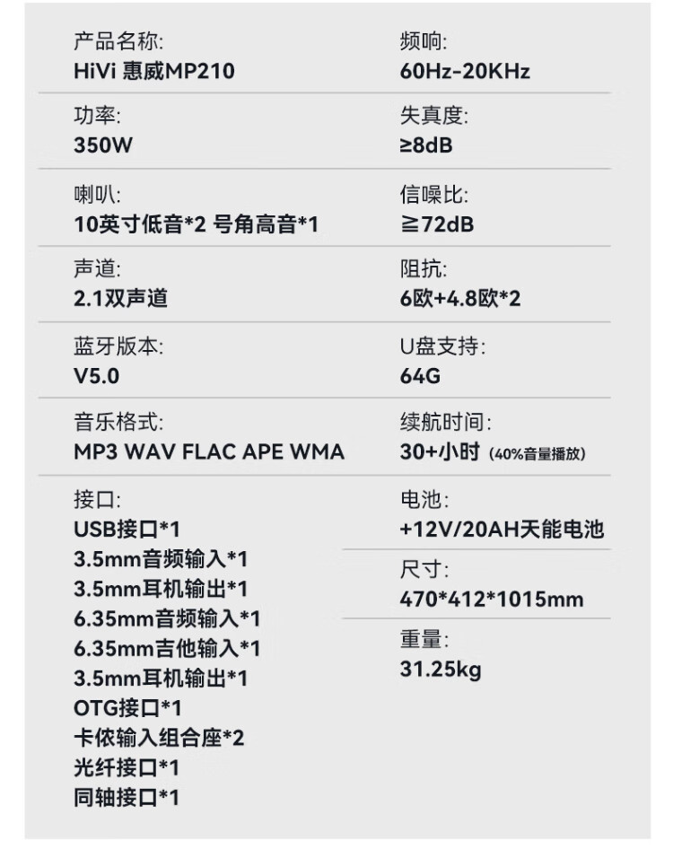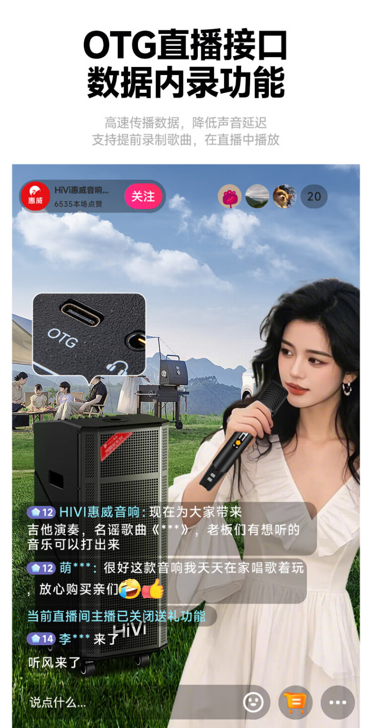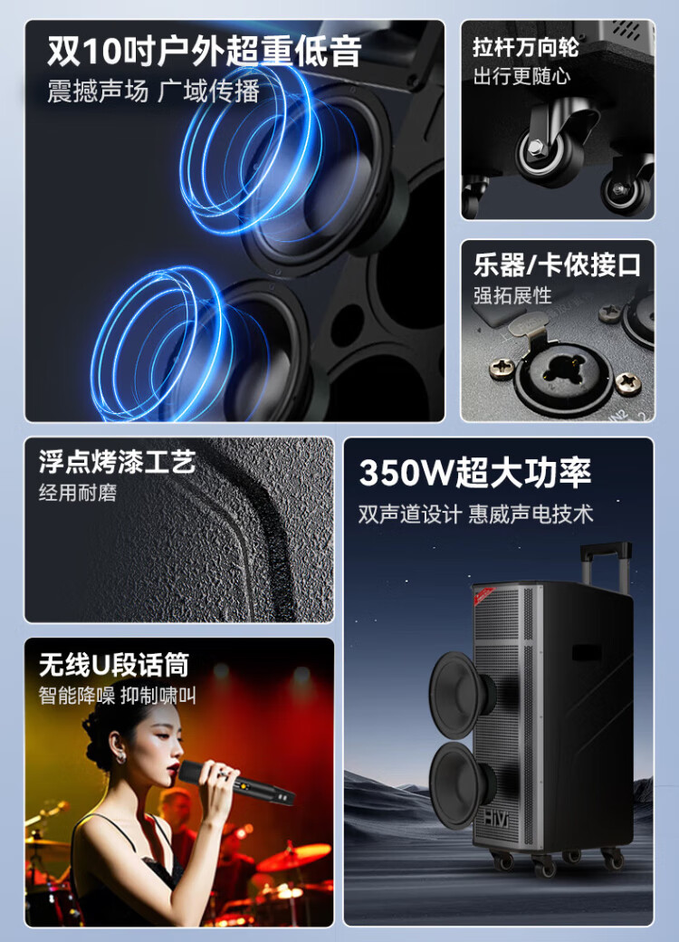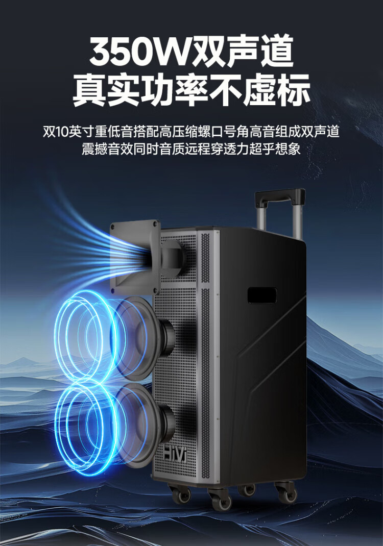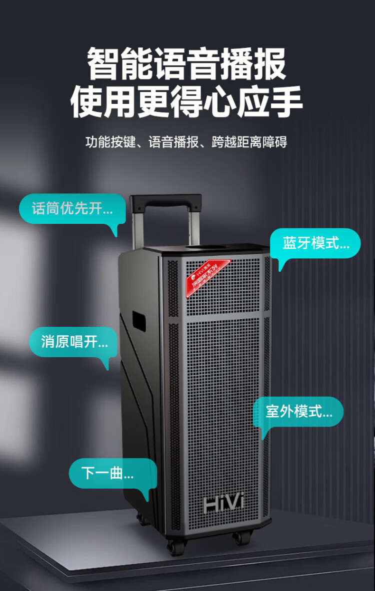 HiVi outdoor square dance karaoke audio home KTV trolley speaker karaoke all-in-one machine Bluetooth connection professional musical instrument stage grade dual 10-inch bass MP210