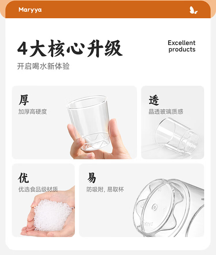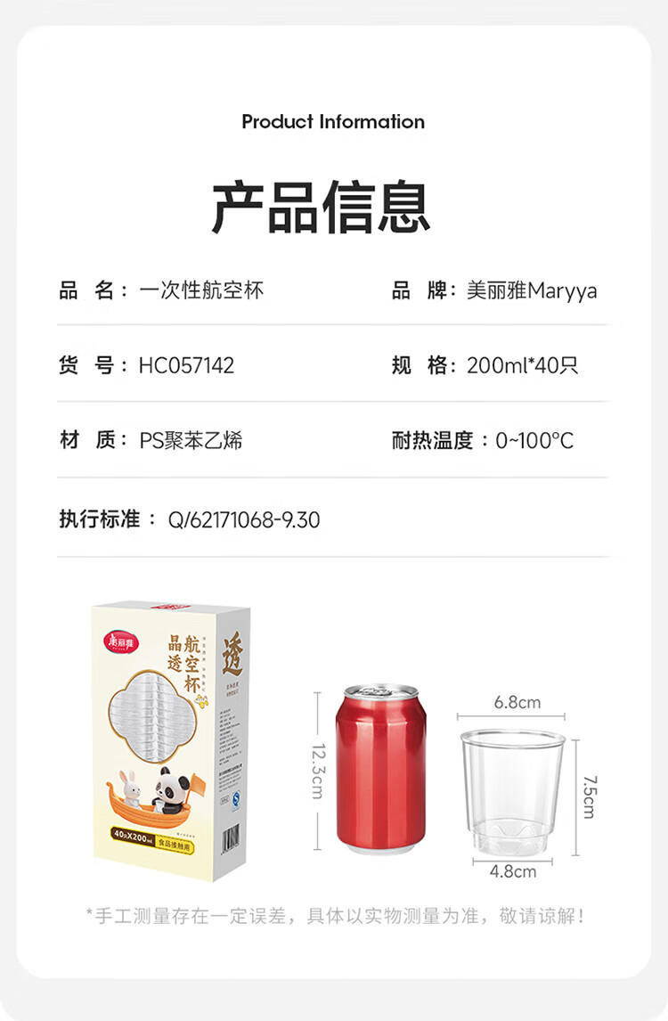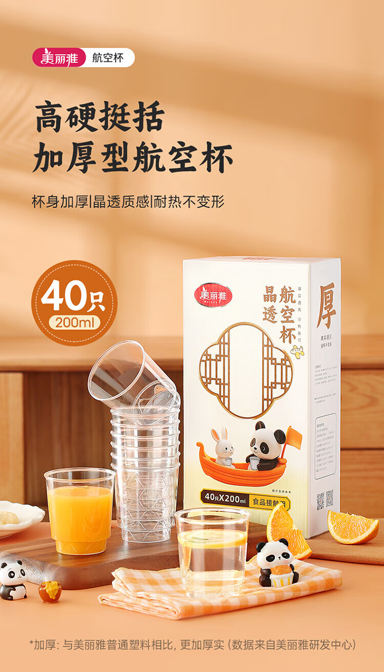 Meiya disposable cups 200ml*40 aviation cups food grade thickened heat-resistant beverage cups plastic water cups tea cups