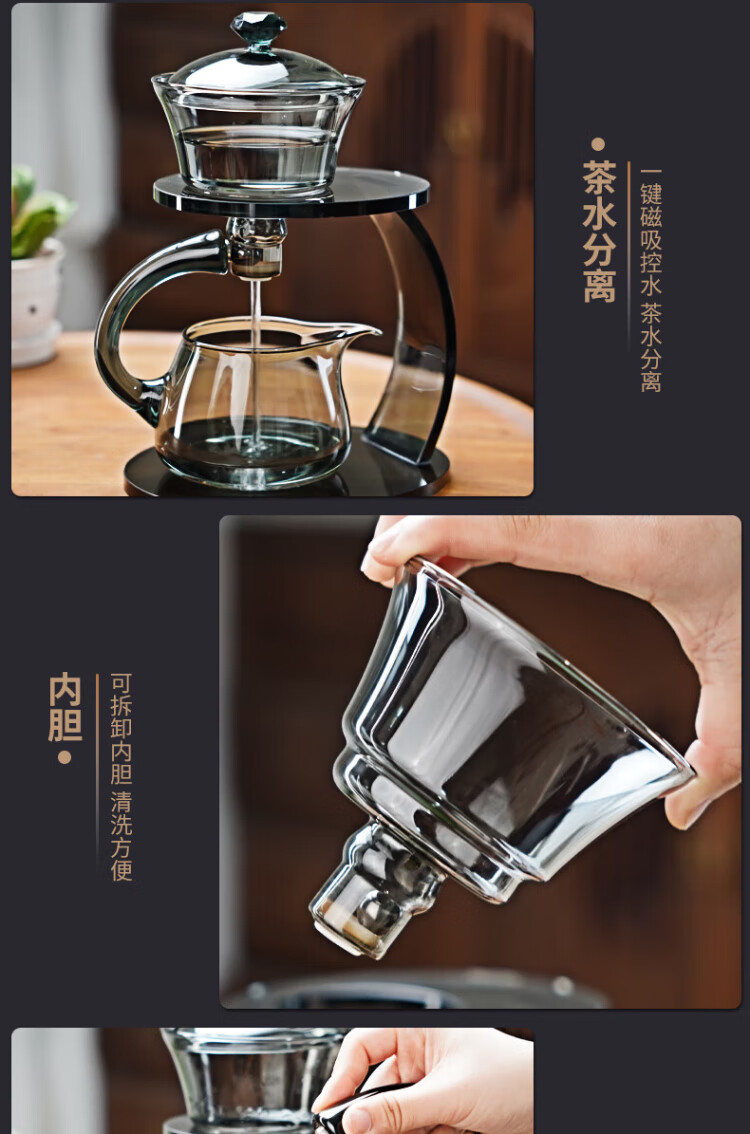 Quandu Automatic Tea Maker Glass Tea Set Lazy Automatic Magnetic Teapot Simple Kung Fu Tea Set