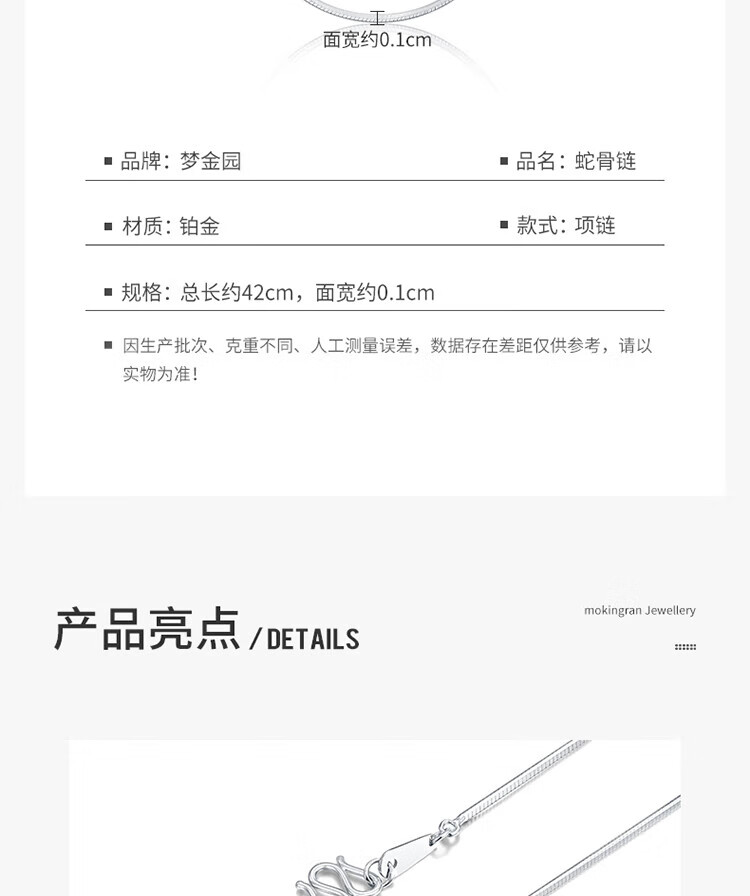 Mengjinyuan Platinum Necklace PT950 Plain Chain Simple Stacking Necklace Couple Style Gift for Girlfriend or Wife