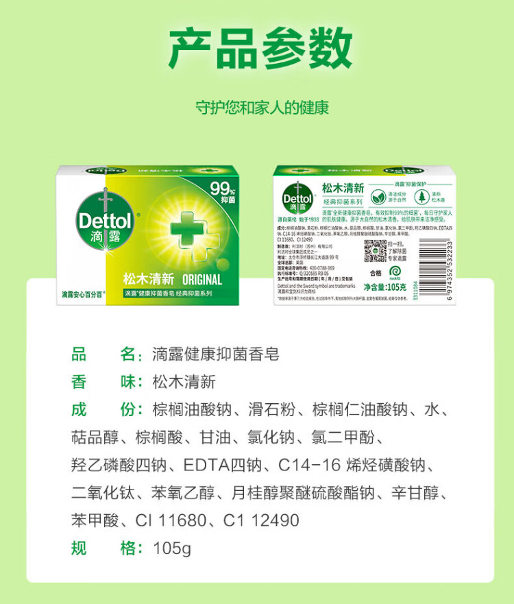 Dettol soap pine 105g shampoo, hand, face, laundry and bath soap, men's soap, women's and children's antibacterial soap