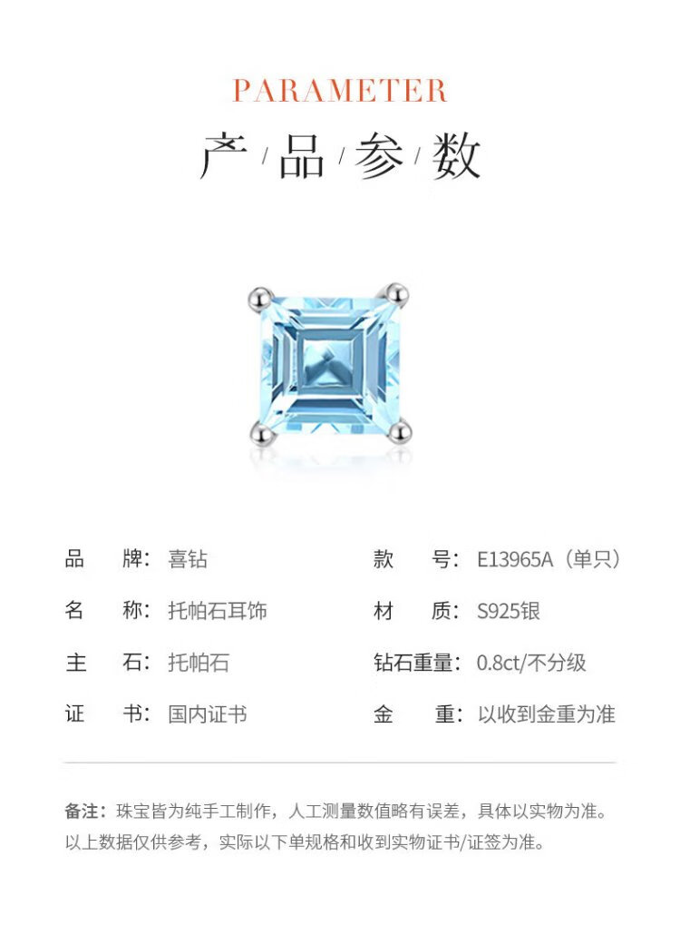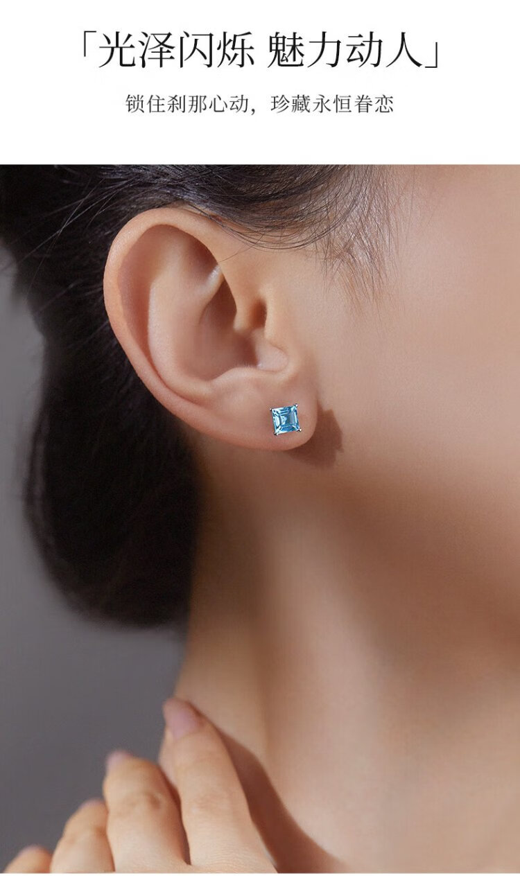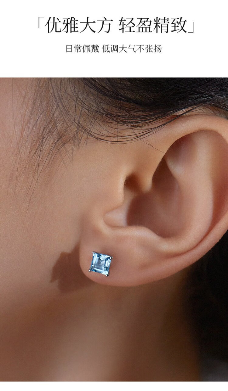 Diamond Birthday Gift Colorful Earrings Princess Topaz Earrings Single Piece for Wife and Girlfriend